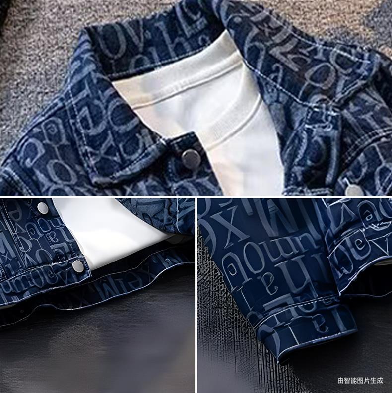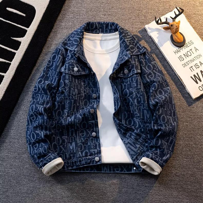 American Retro Heavy Printed Presbyopic Letter Denim Jacket