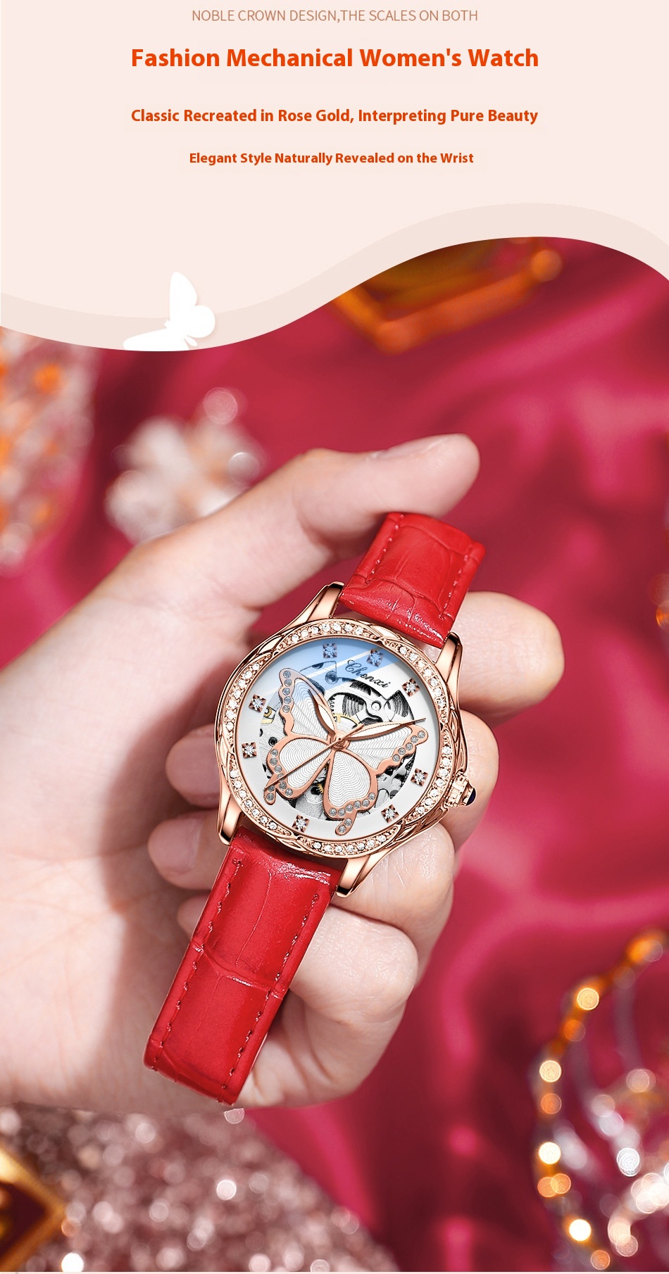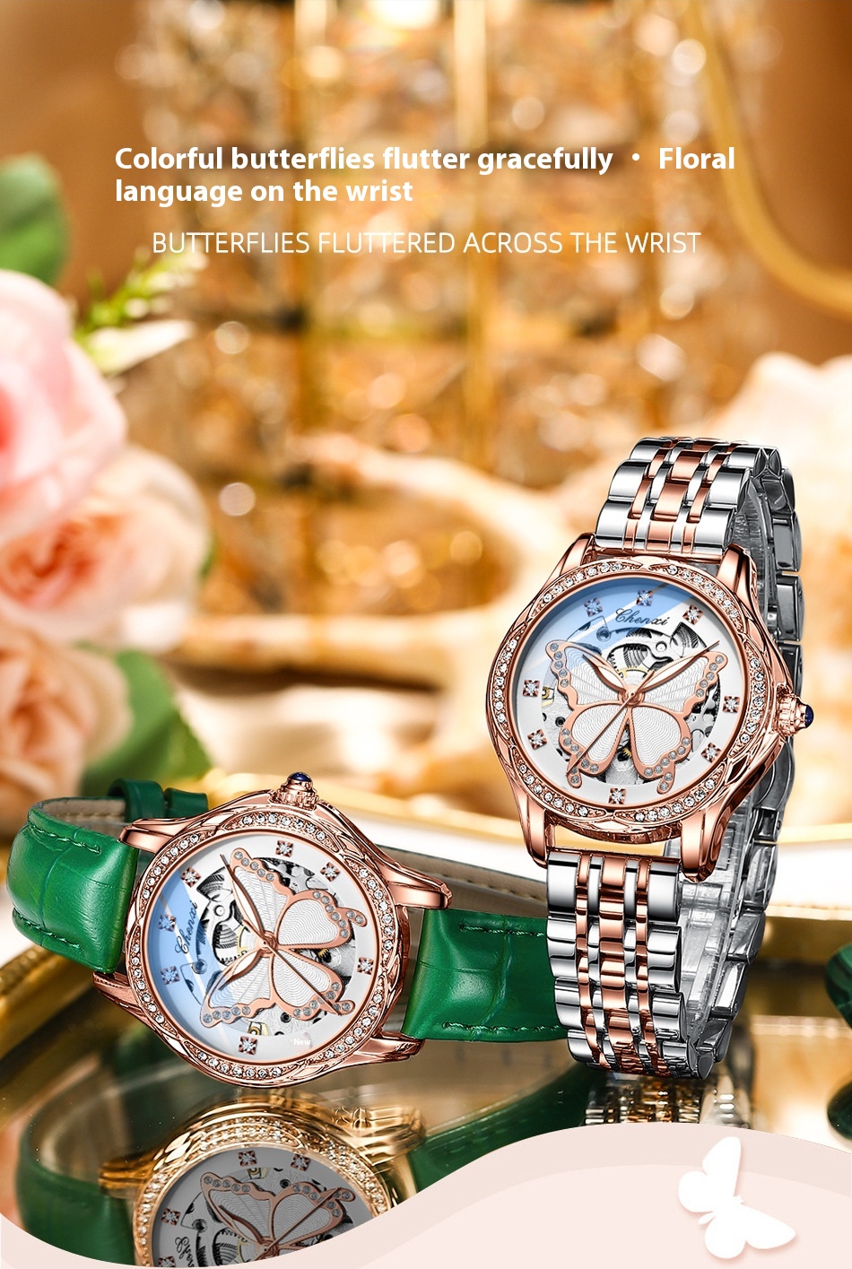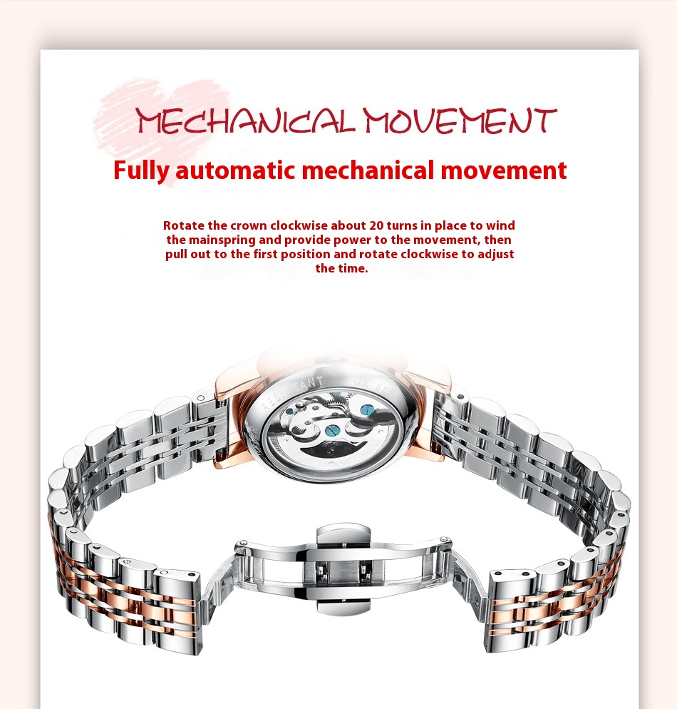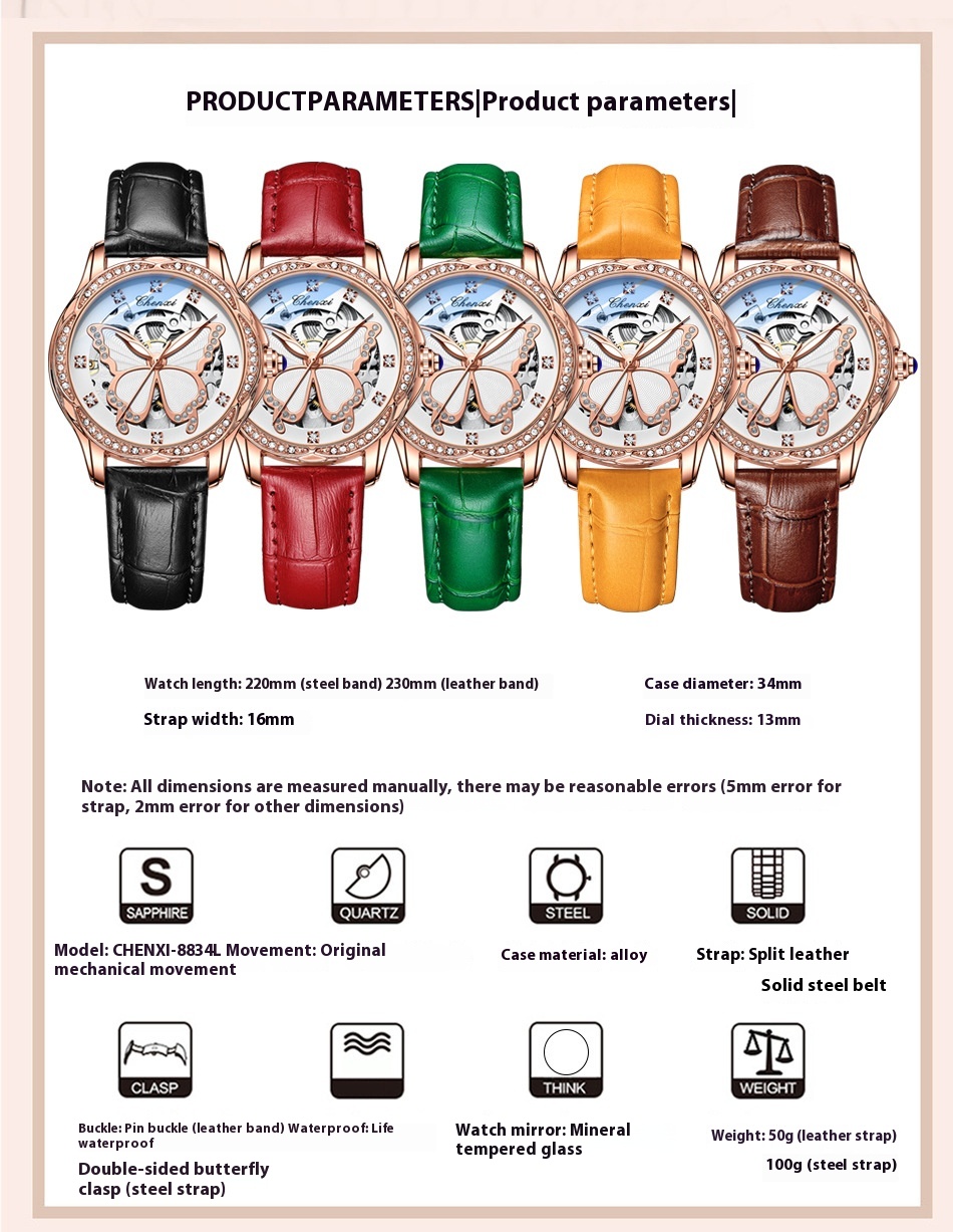 Butterfly Dial Fashion Diamond-embedded Watch Women's Waterproof Automatic Mechanical Watch