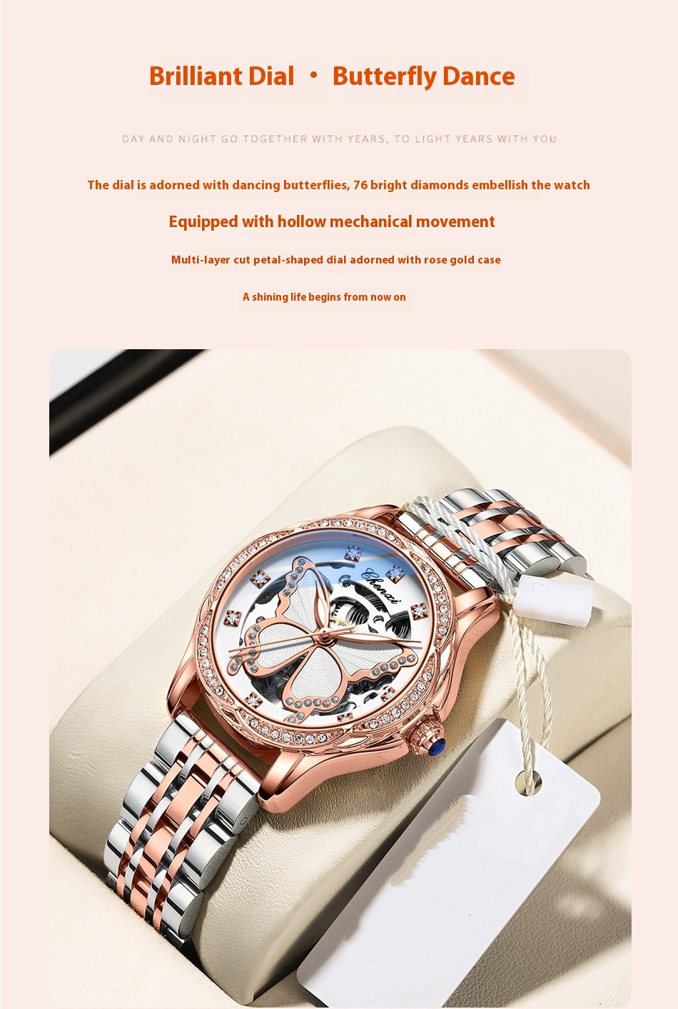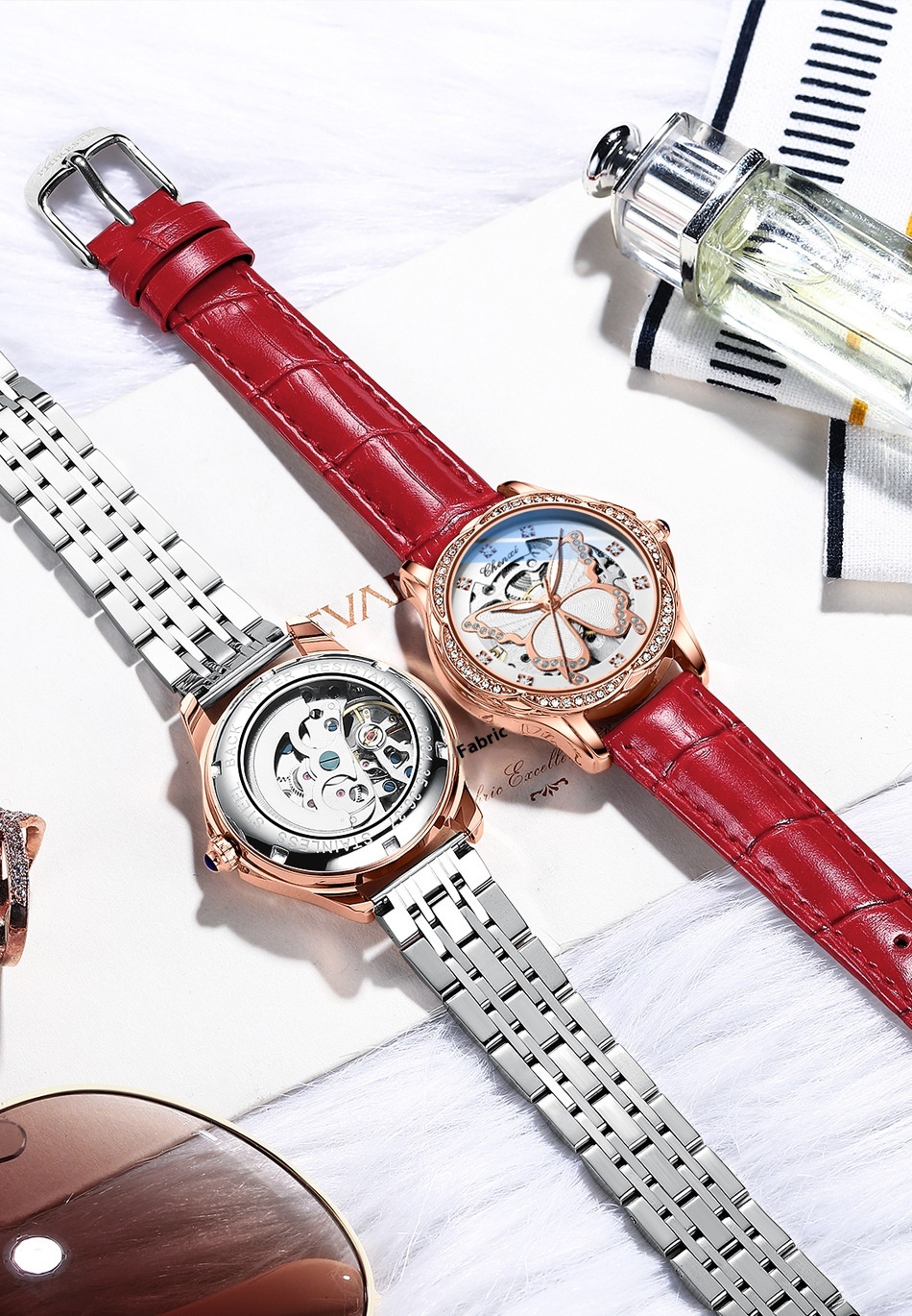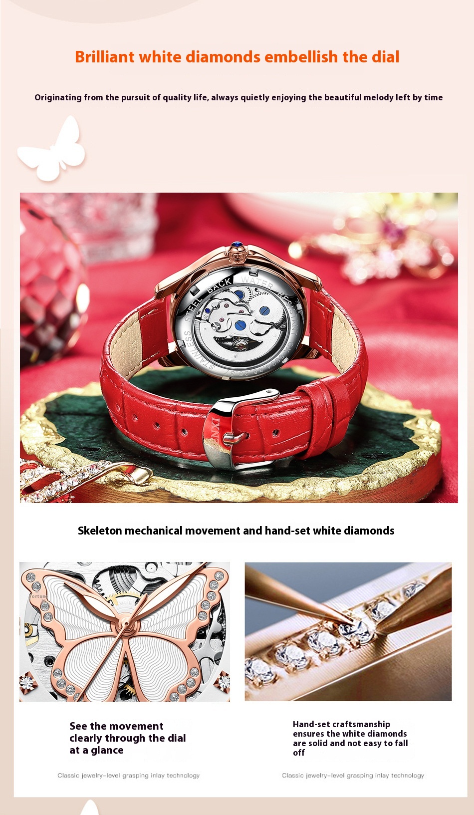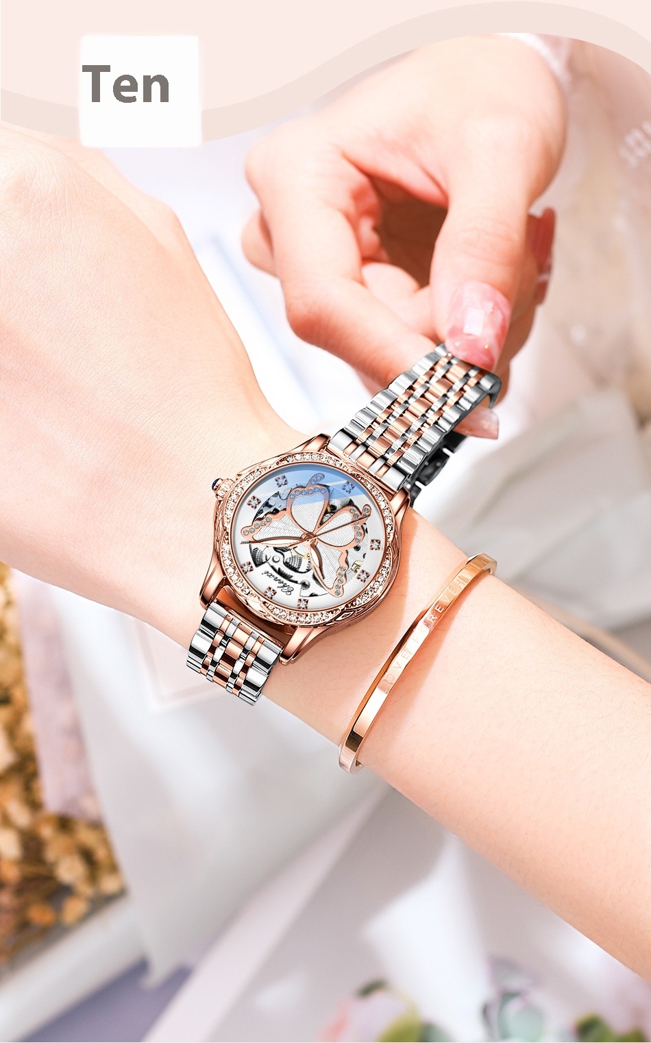 Butterfly Dial Fashion Diamond-embedded Watch Women's Waterproof Automatic Mechanical Watch