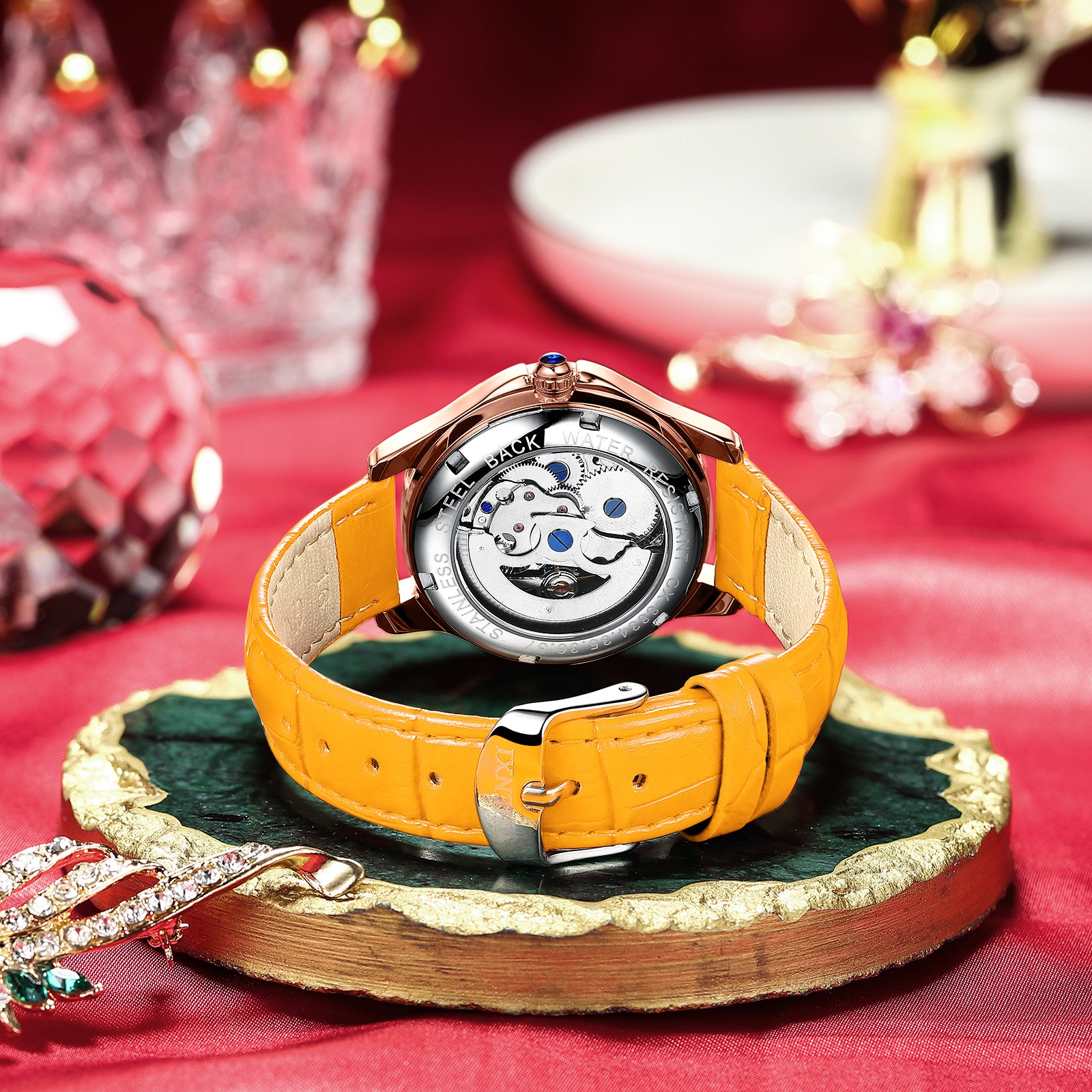 Color: red, green, black, orange, brown, rose steel belt