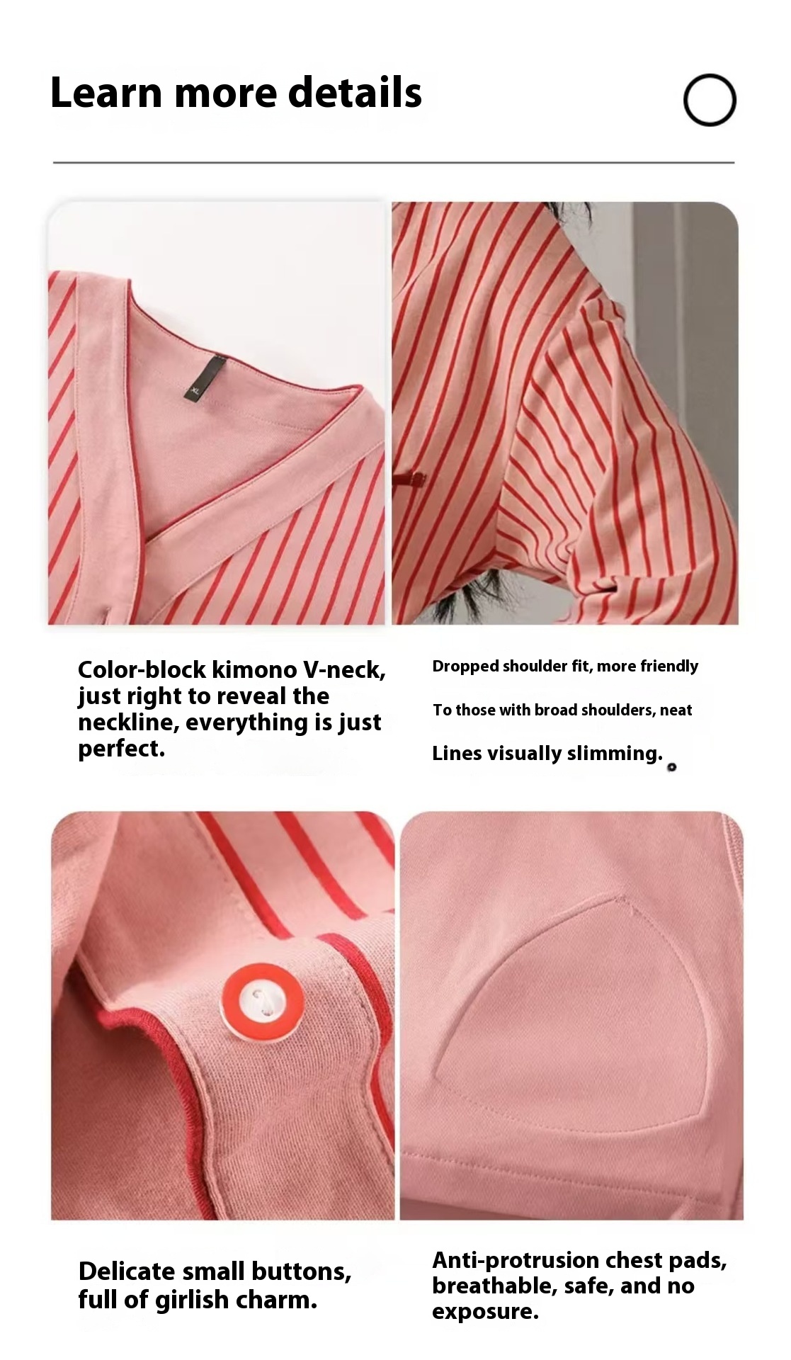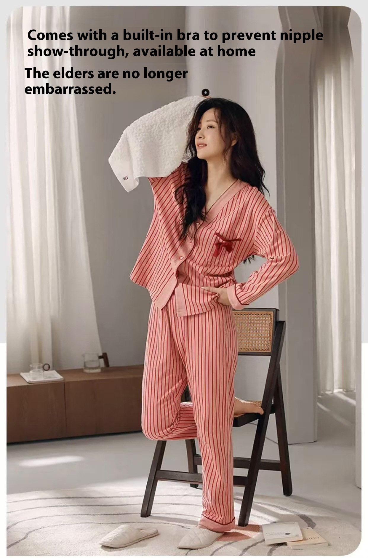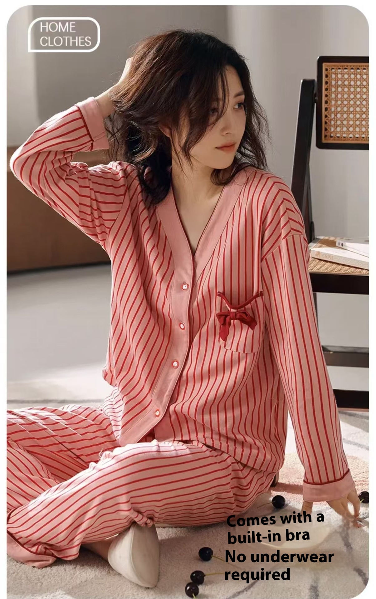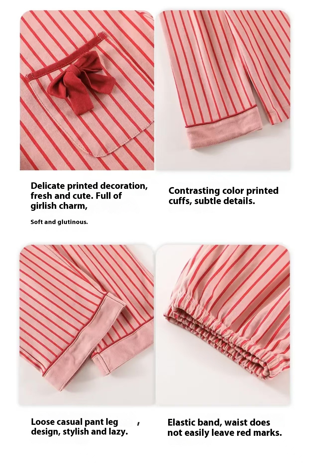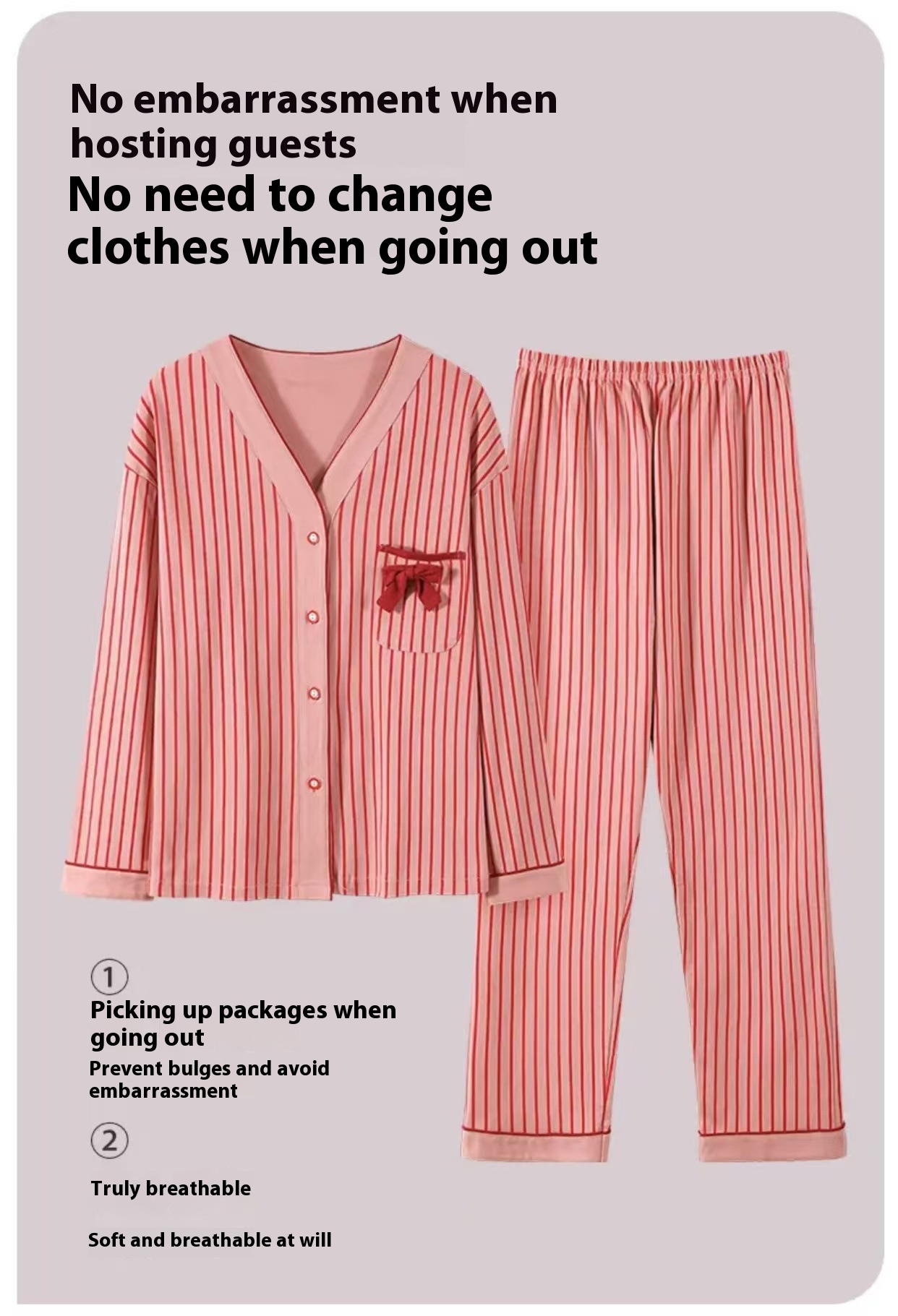 Cotton Pajamas Women's Long-sleeved Two-piece Suit Kimono Cardigan Striped