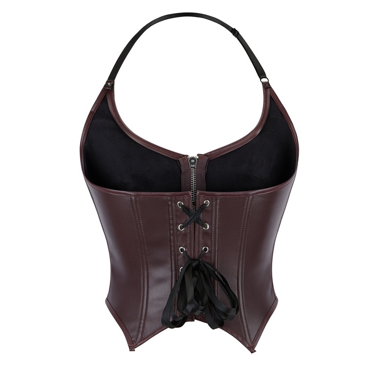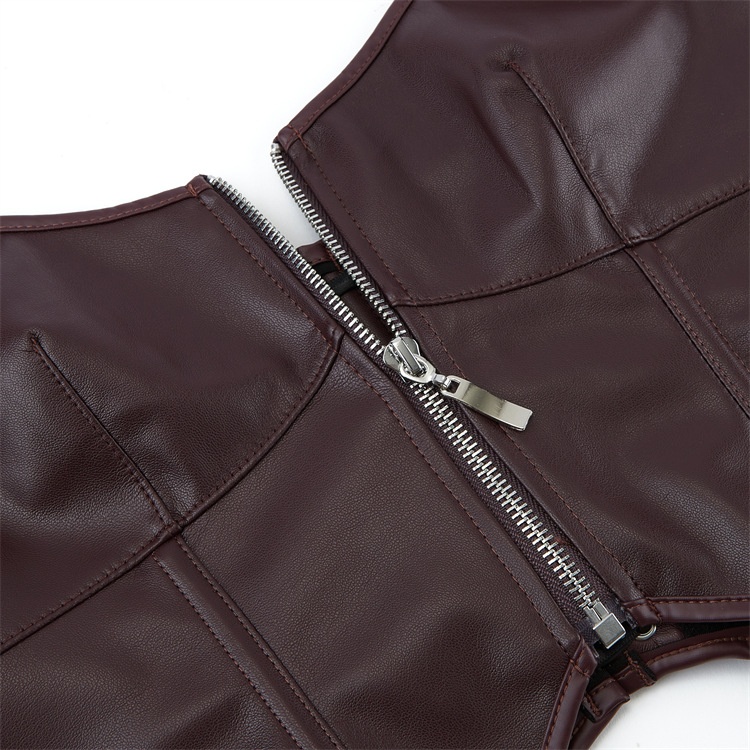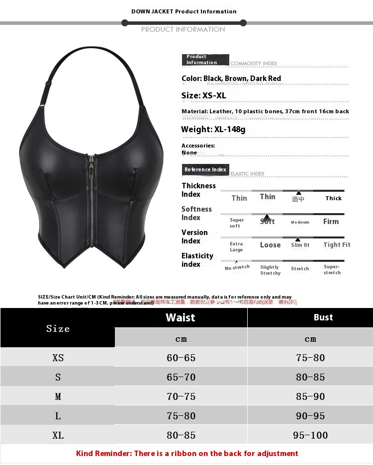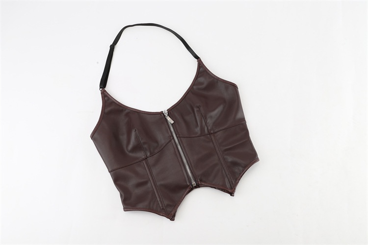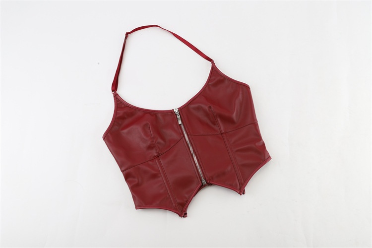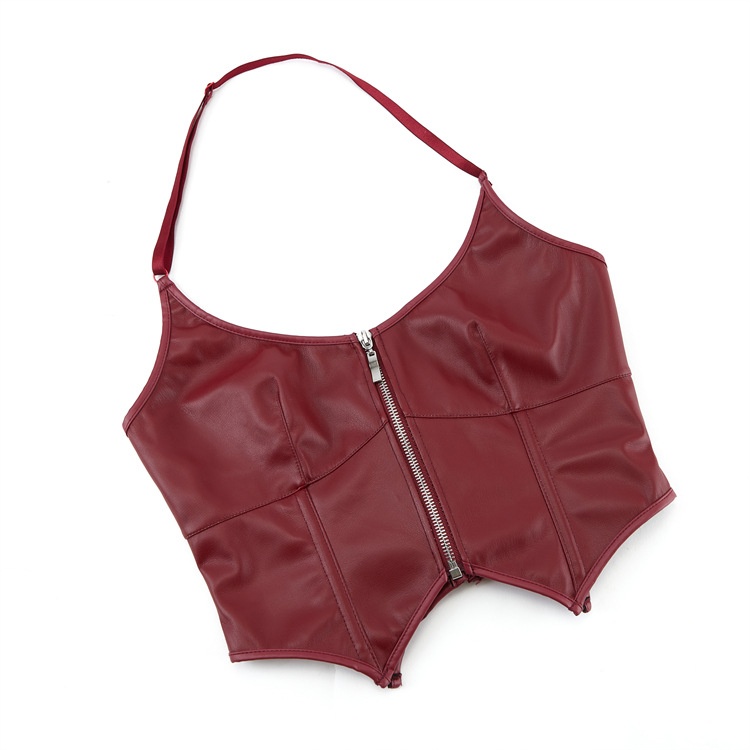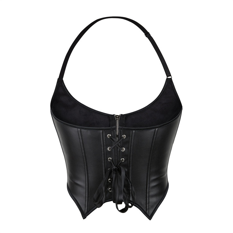 Leather Halter Zipper Women's Tube Top Chest Support Body Shaping Top