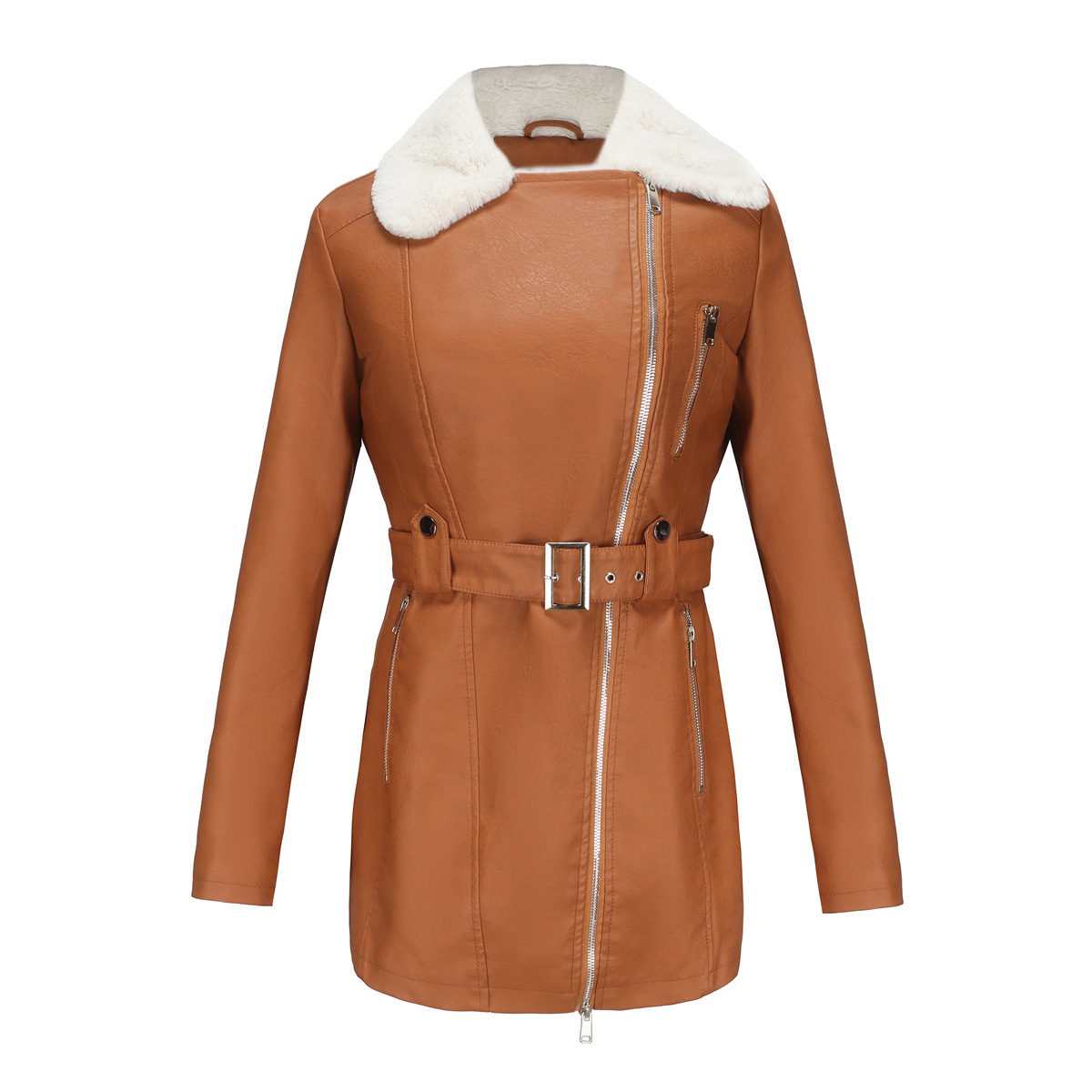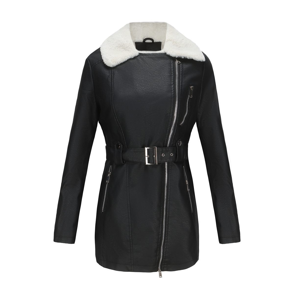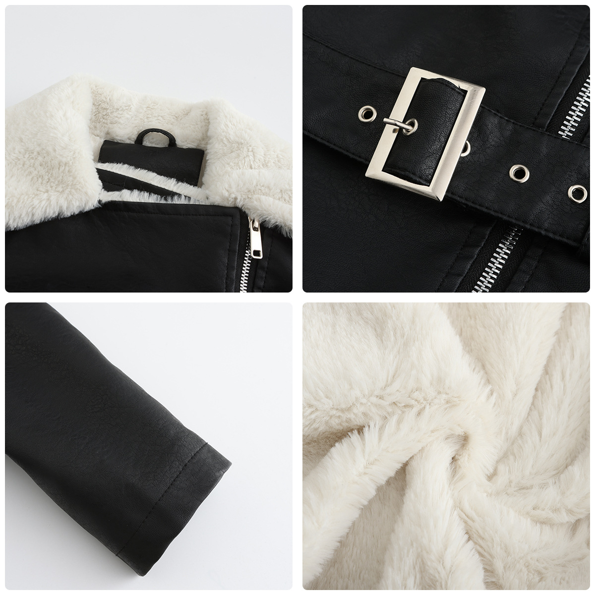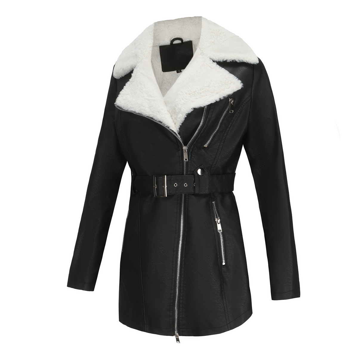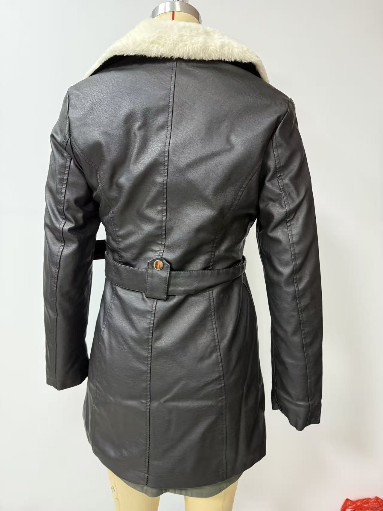 Long Sleeve Fleece Leather Jacket Women