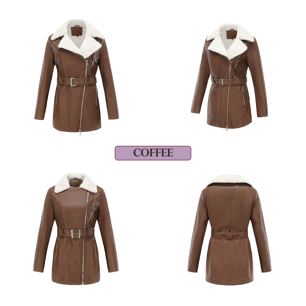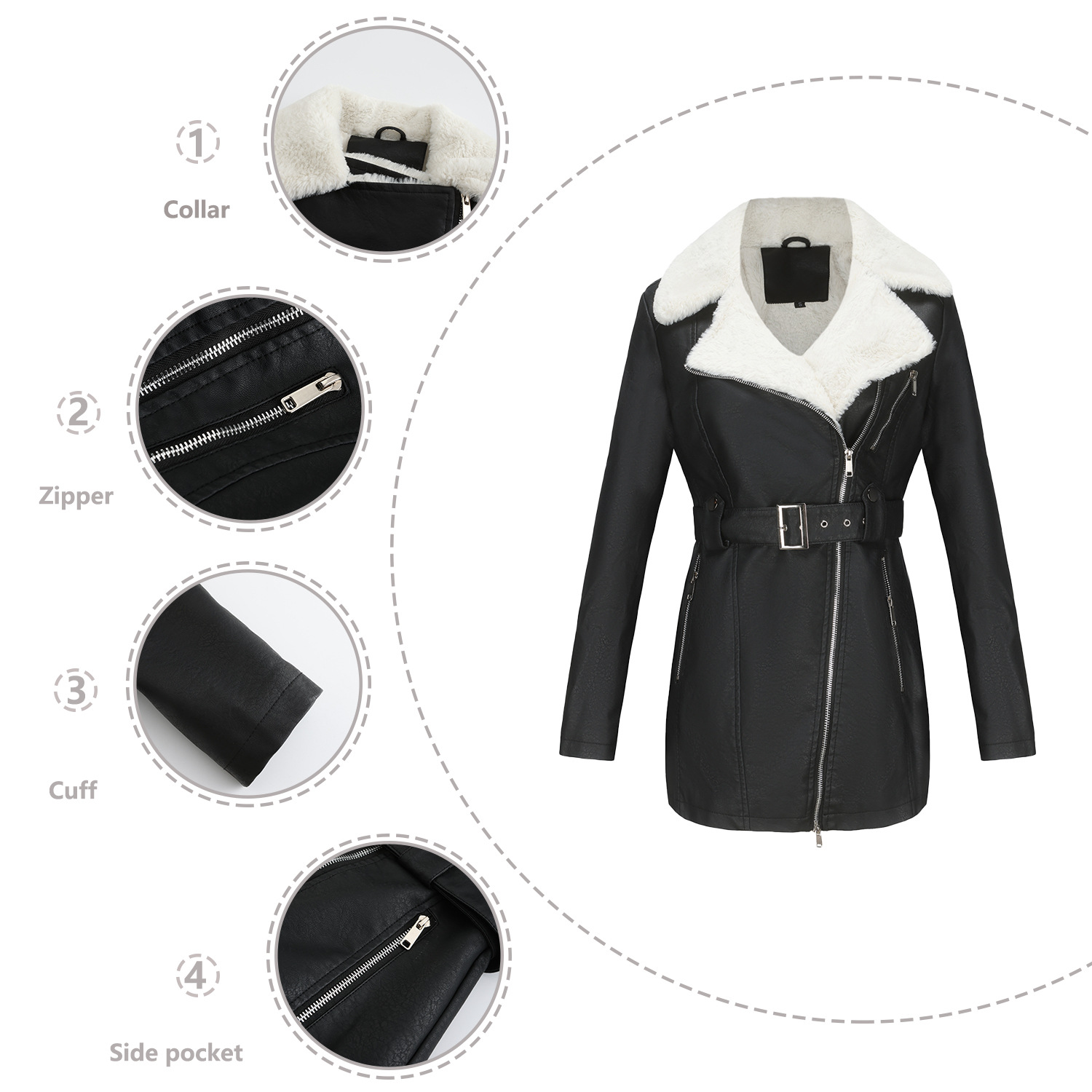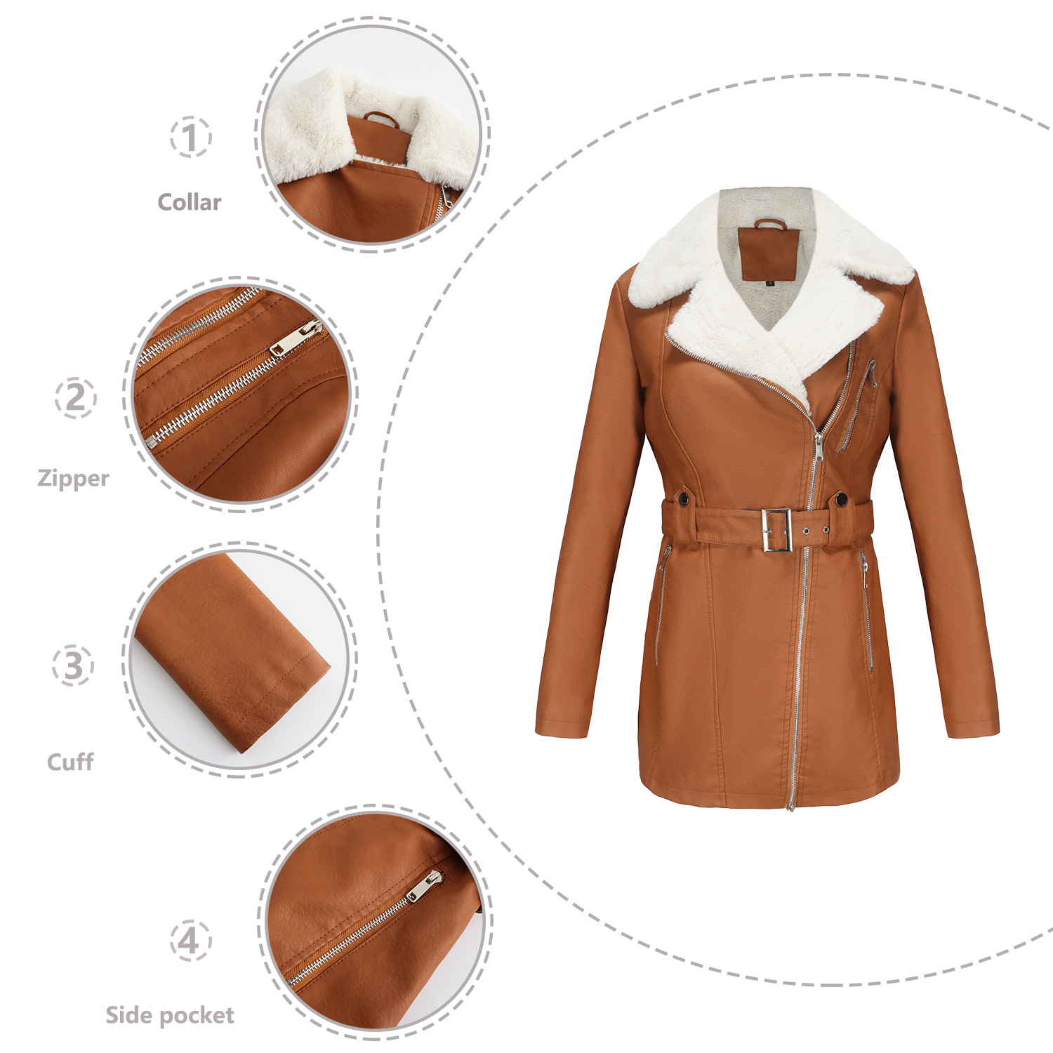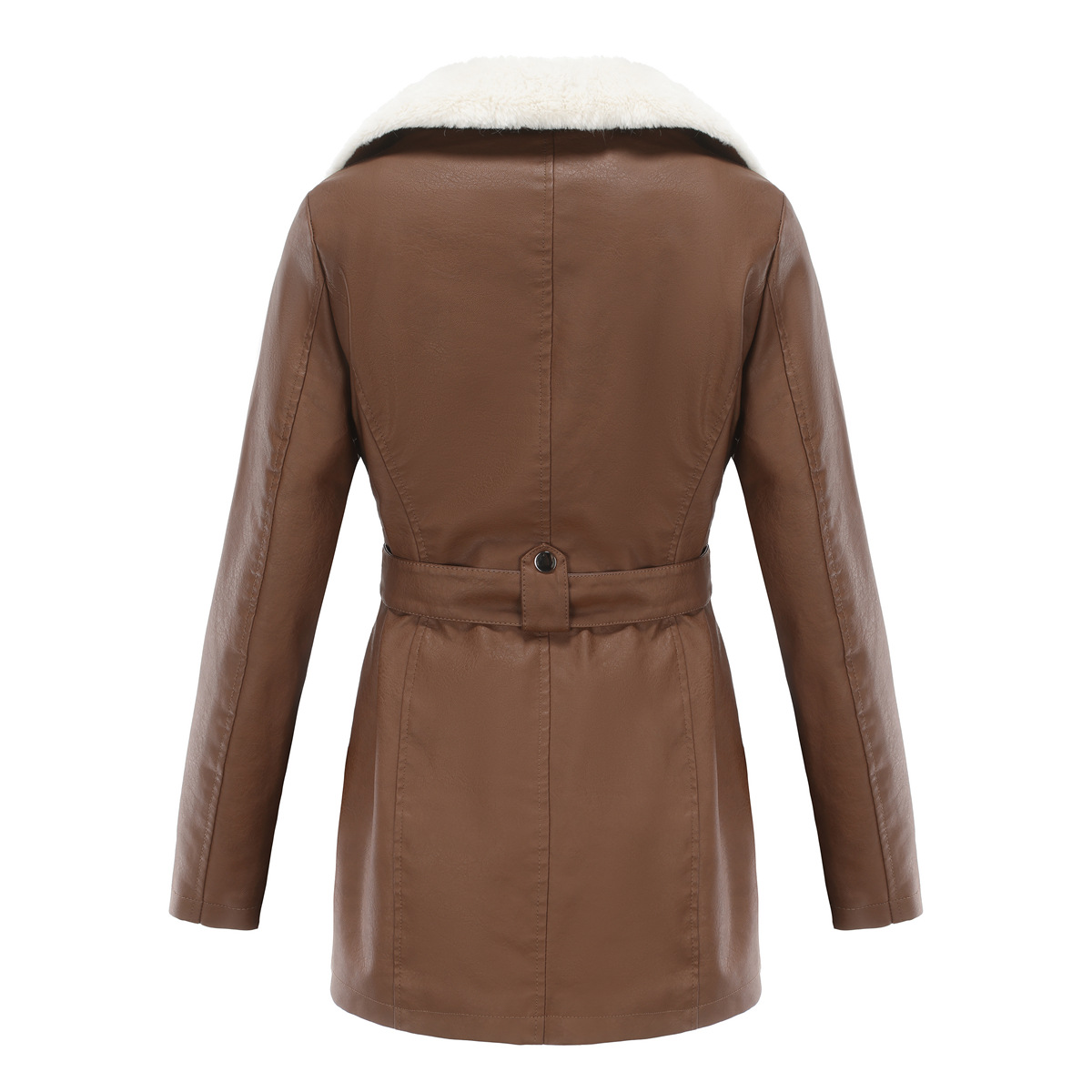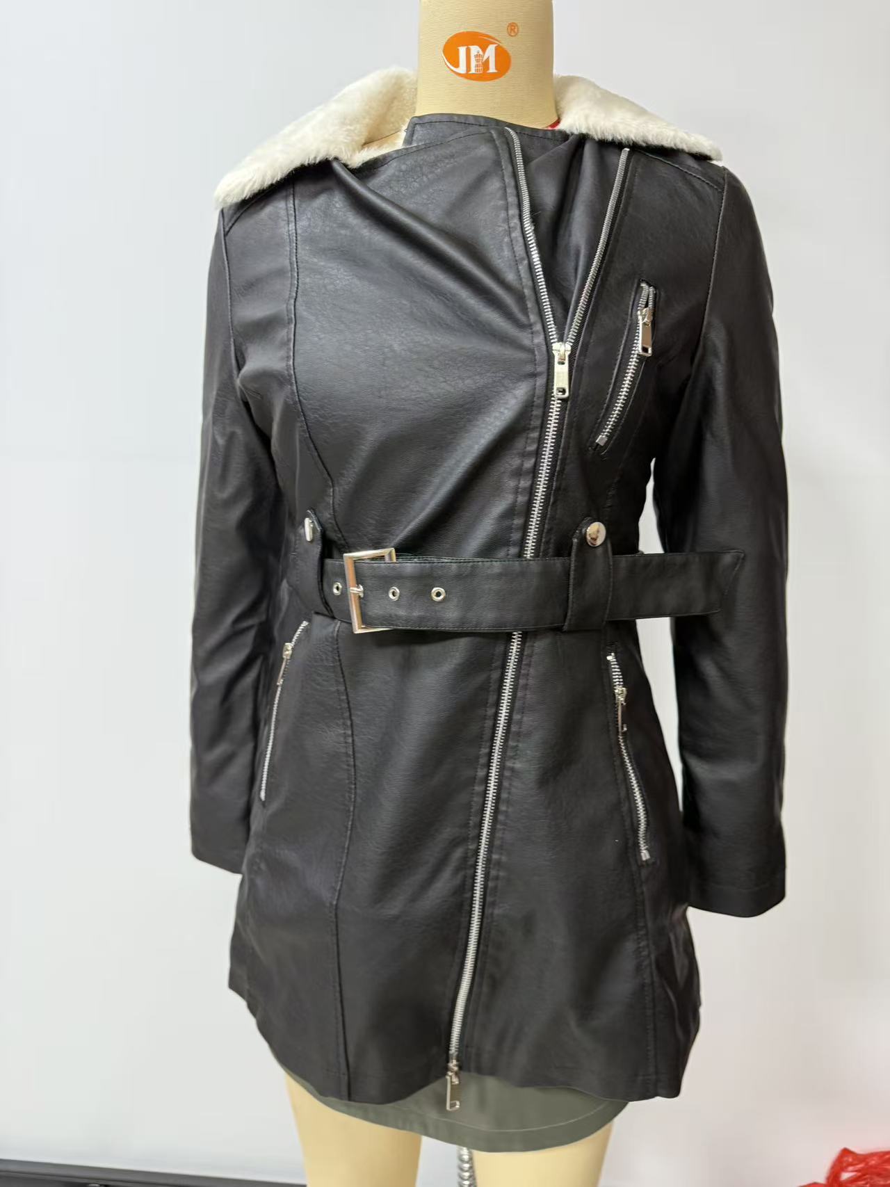 Long Sleeve Fleece Leather Jacket Women