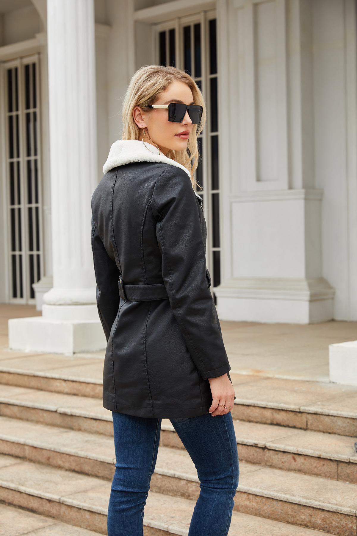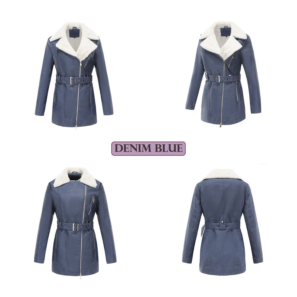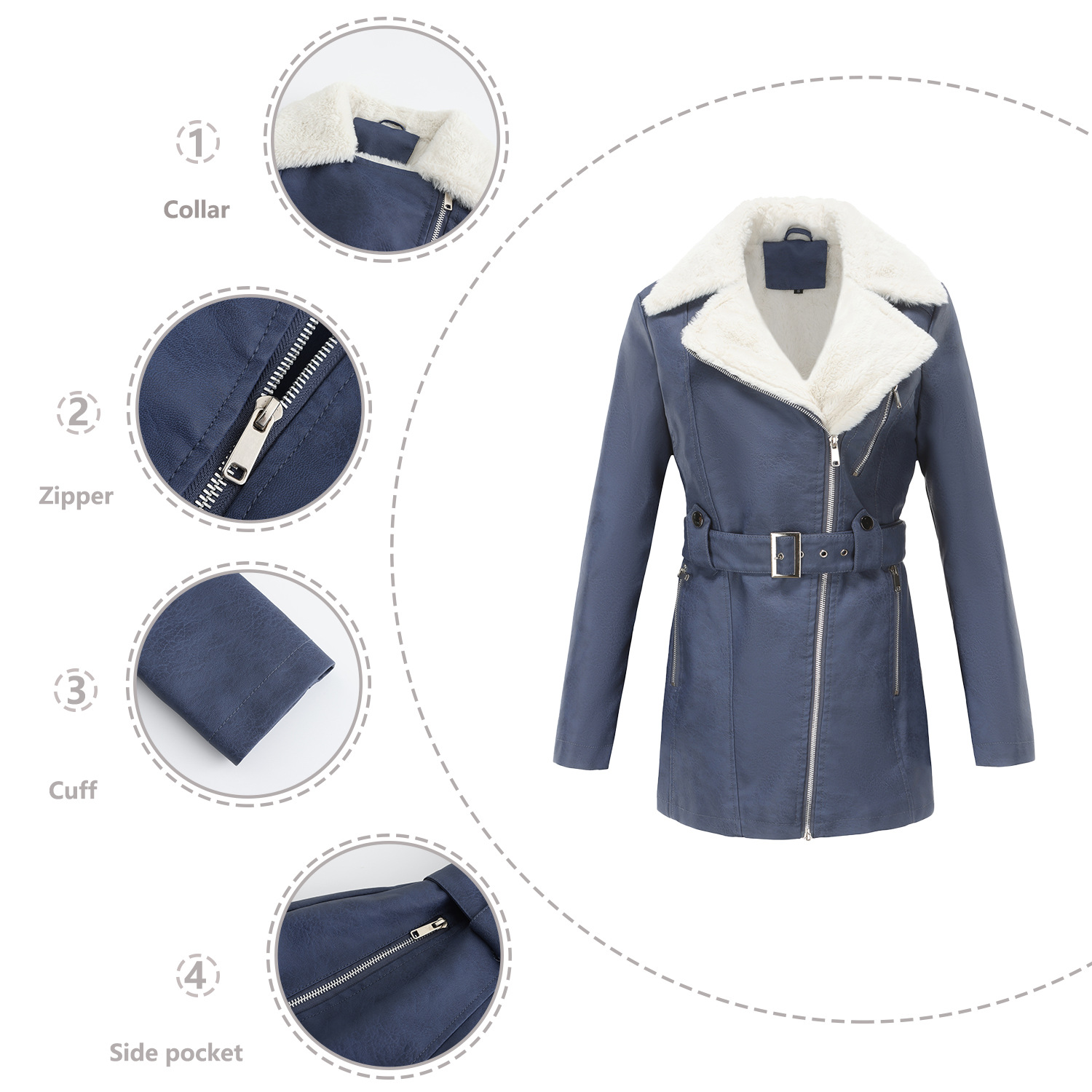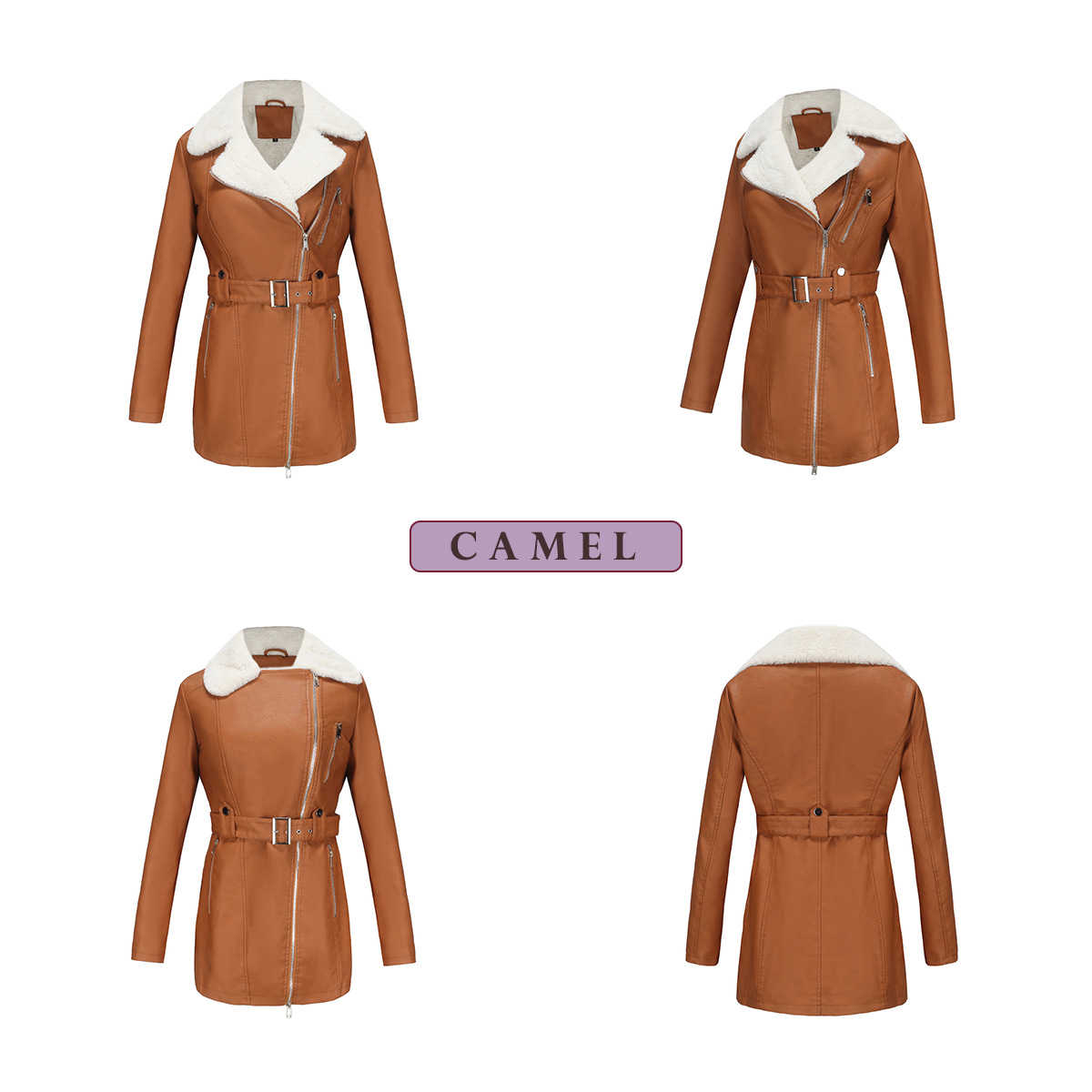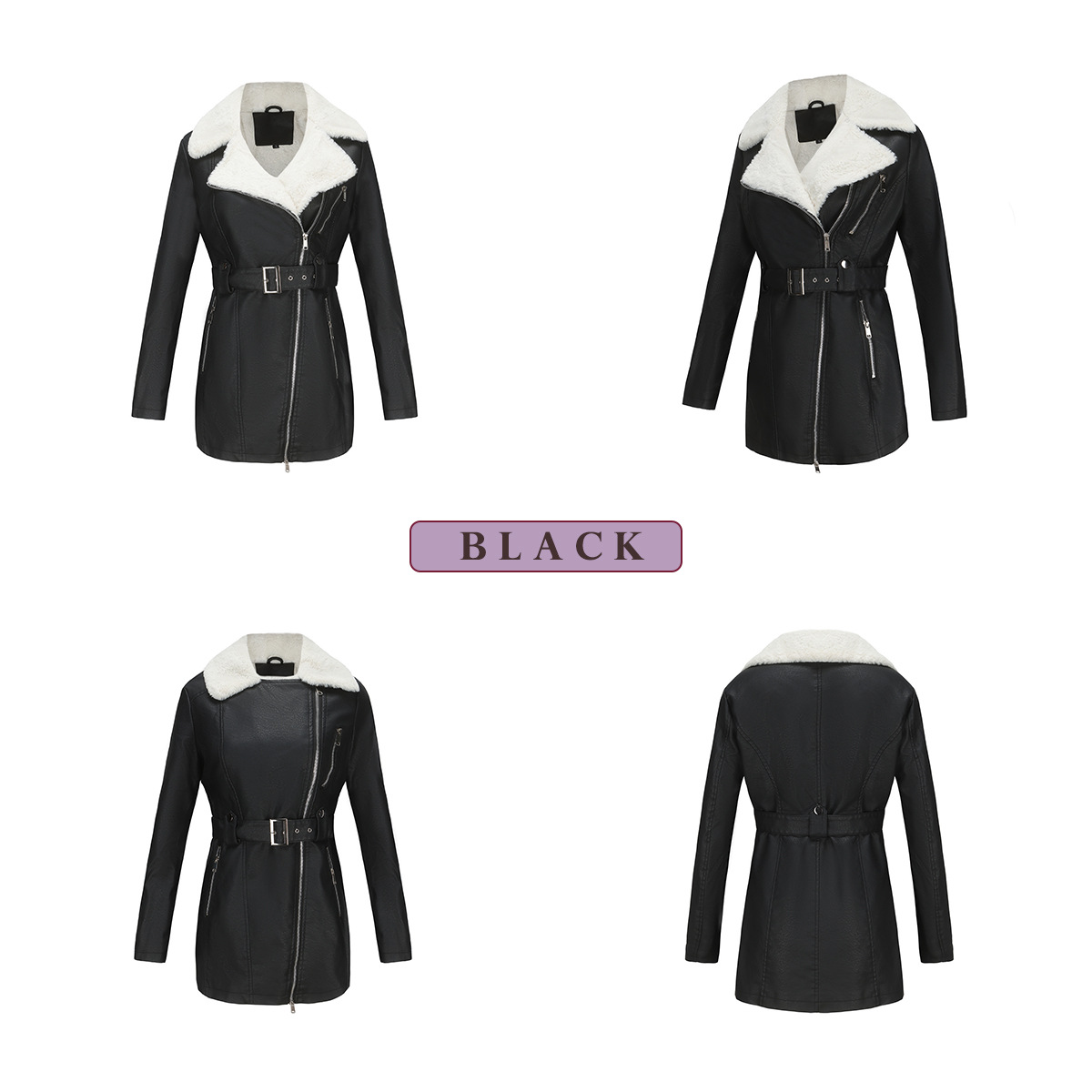 Long Sleeve Fleece Leather Jacket Women