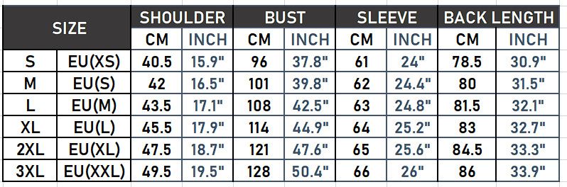 Size: S,M,L,XL,XXL,XXXL,EU(XS),EU(S),EU(M),EU(L),EU(XL),EU (XXL)
