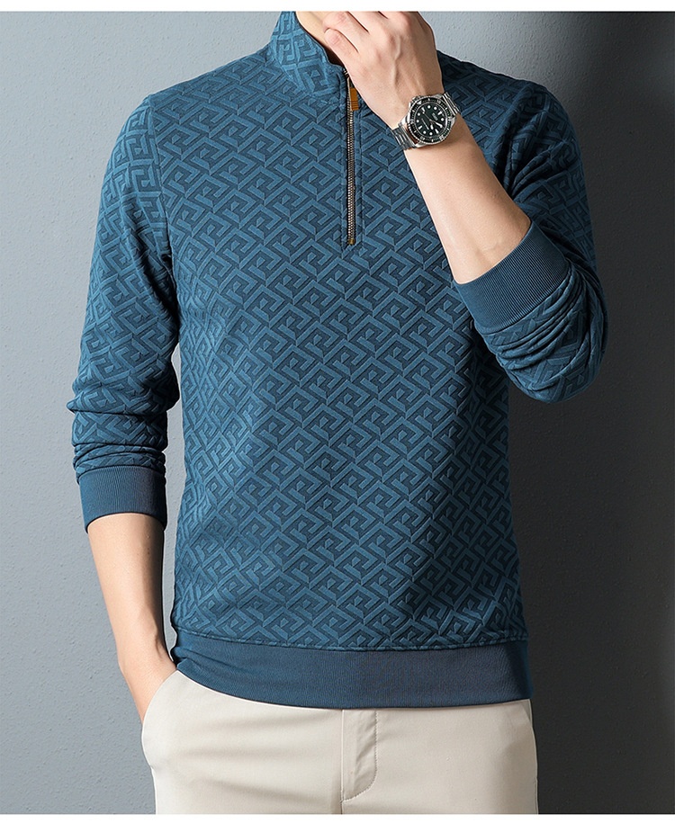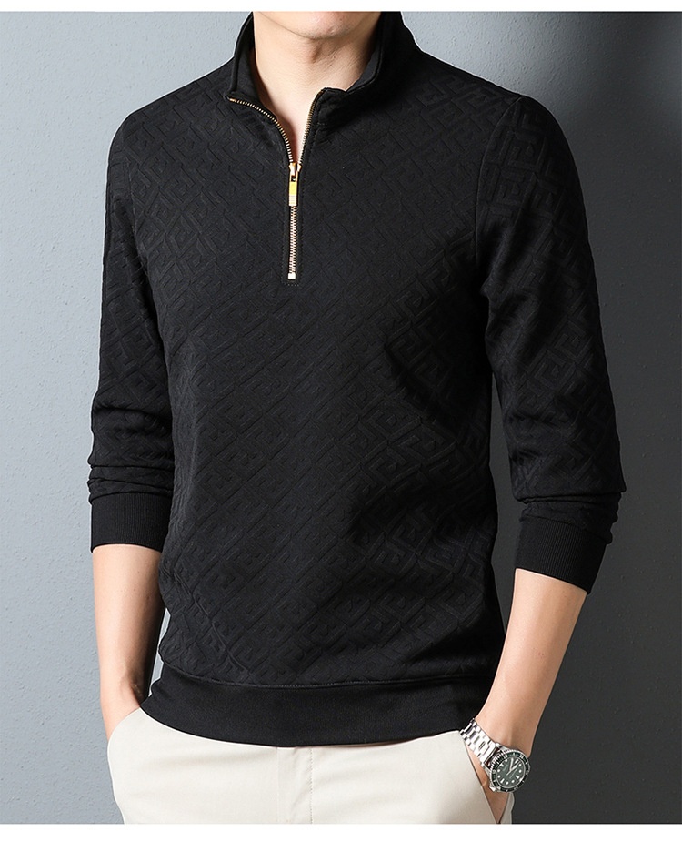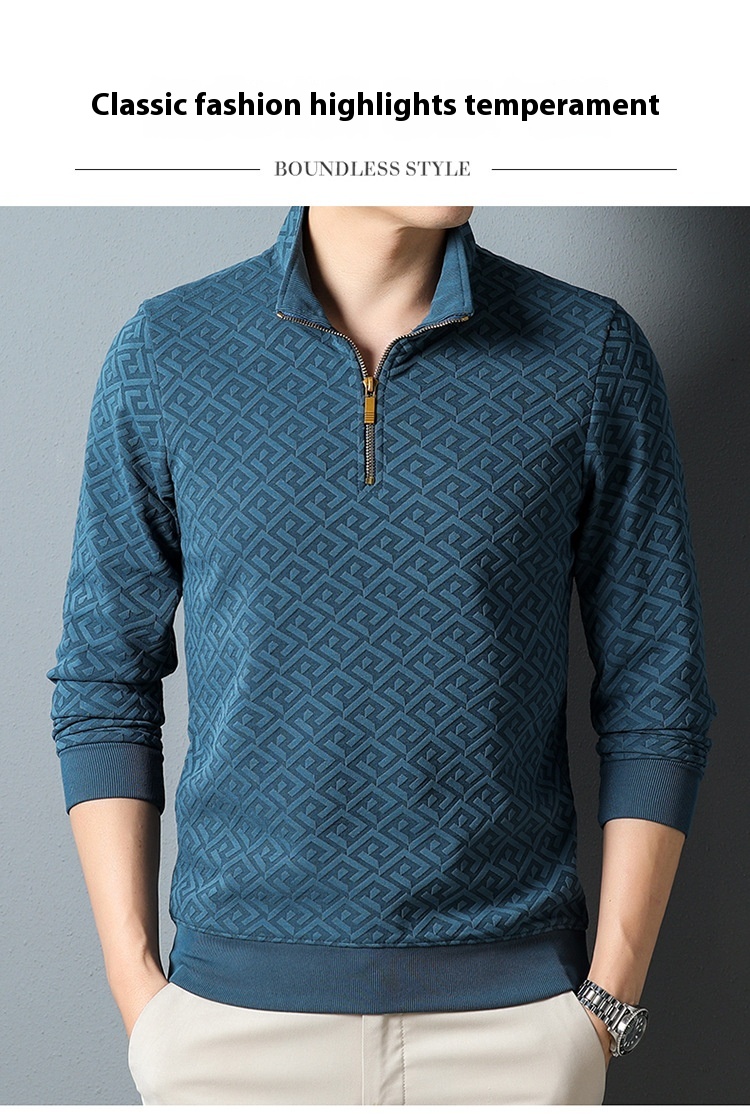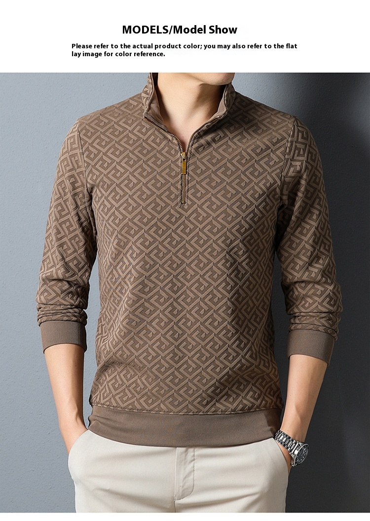 Long Sleeve T-shirt Zipper And Lapel Casual Stand Collar Bottoming Shirt Men's Clothing
