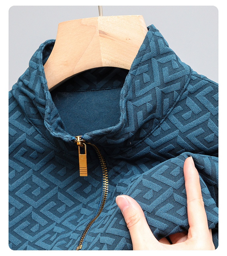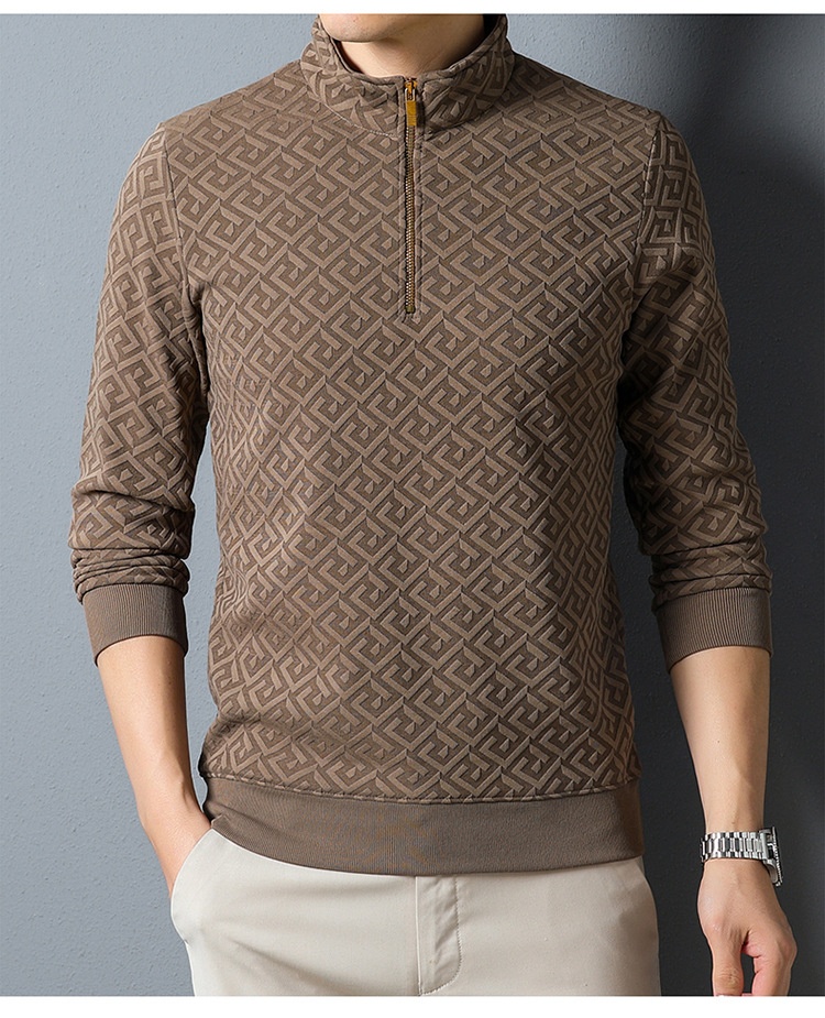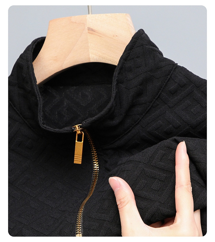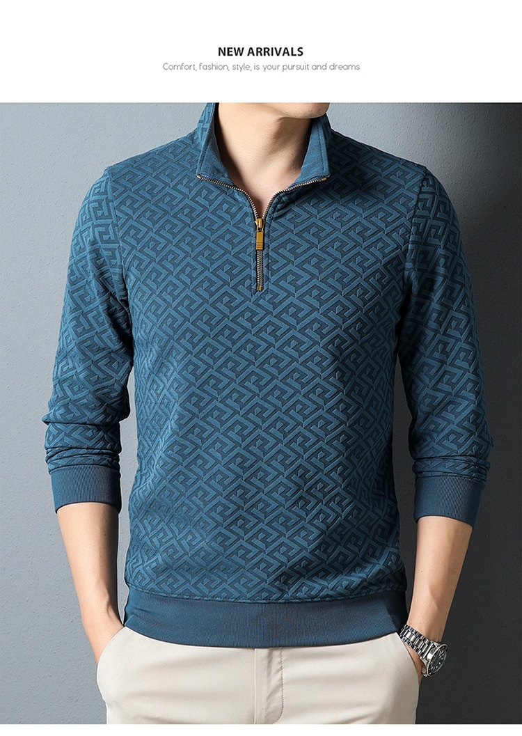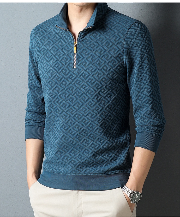 Long Sleeve T-shirt Zipper And Lapel Casual Stand Collar Bottoming Shirt Men's Clothing