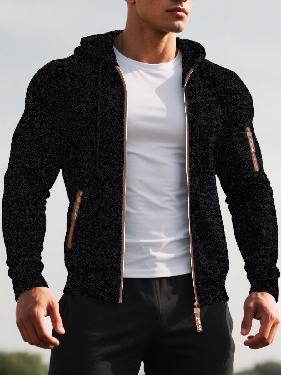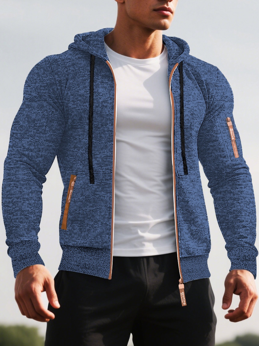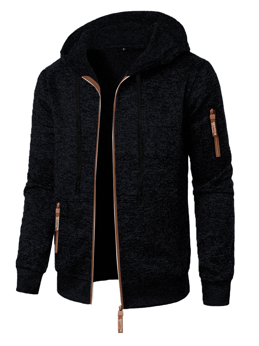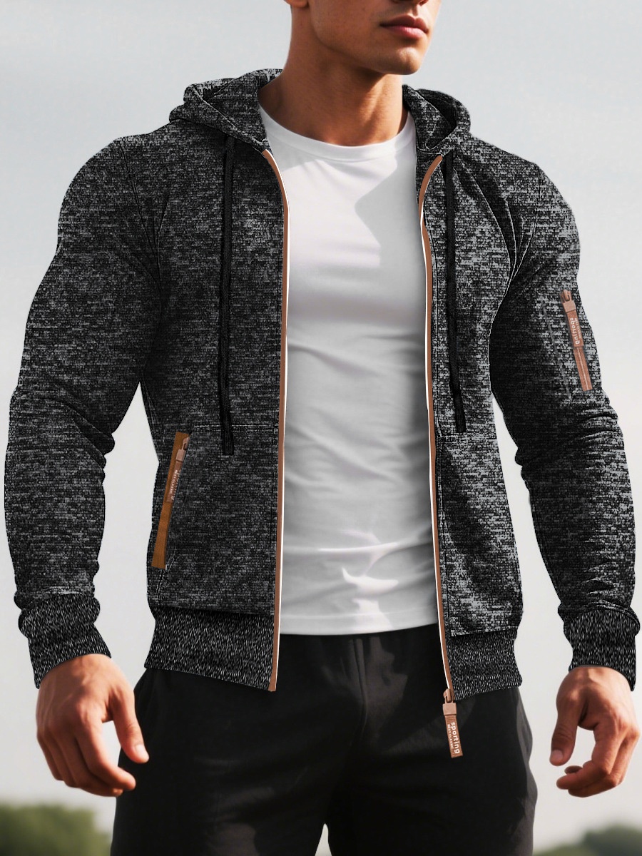 Men's Sports Fitness Casual Jacquard Sweater Hooded Coat