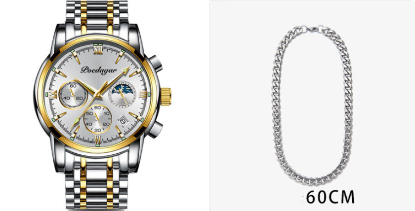 Color: natural black surface steel strip (three-pin calendar), natural blue surface steel strip (three-pin calendar), black and golden surface steel strip (three-pin calendar), Golden white surface steel strip (three-pin calendar), black cover black surface steel belt (three-pin calendar), natural black surface belt style (three-pin calendar), natural blue surface belt style (three-pin calendar), black and golden surface belt style (three-pin calendar), gold white surface belt style (three-pin calendar), black cover black surface belt style (three-pin calendar)
