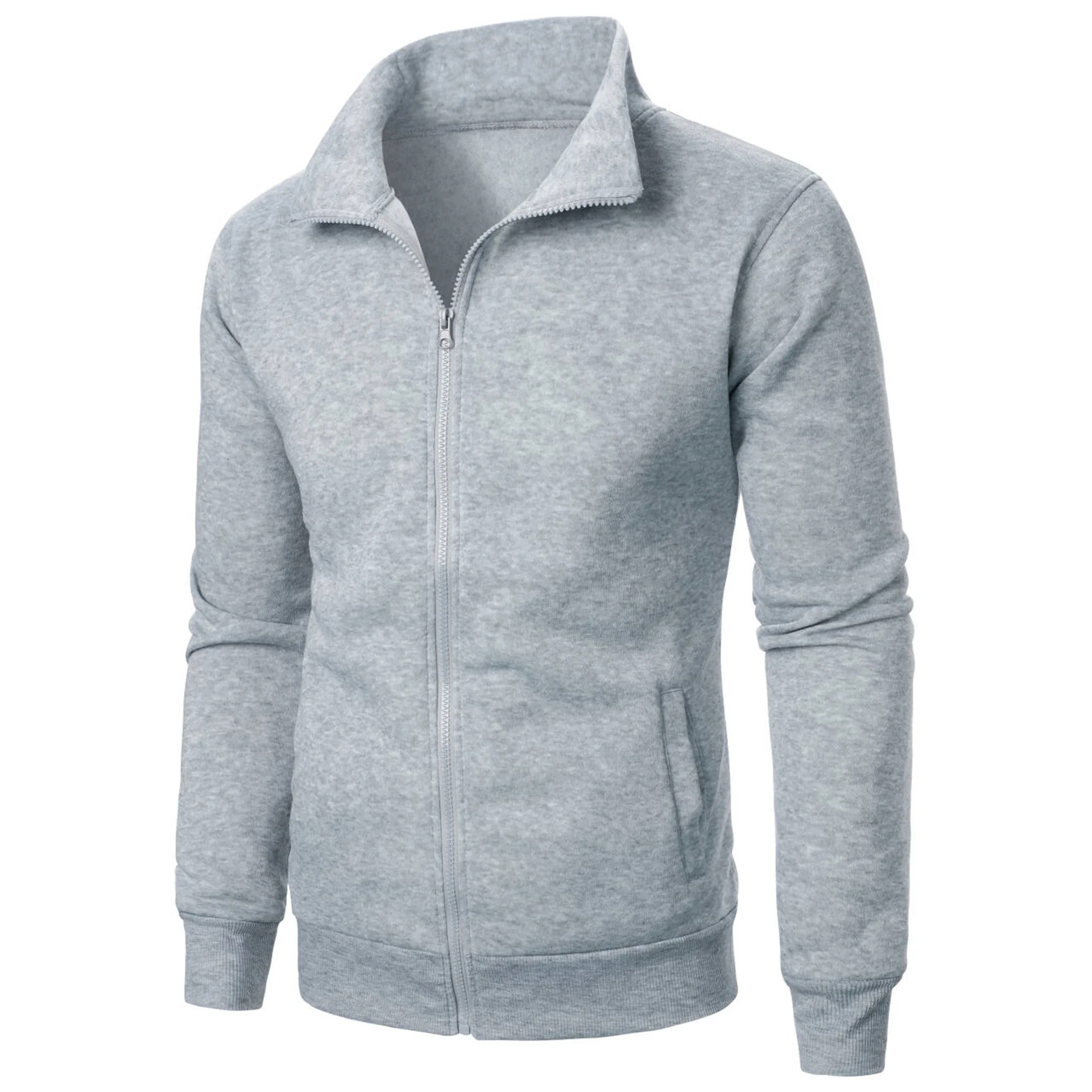 Stand Collar Cardigan Zipper Fleece-lined Thickened Threaded Cuff Casual Sweatshirt