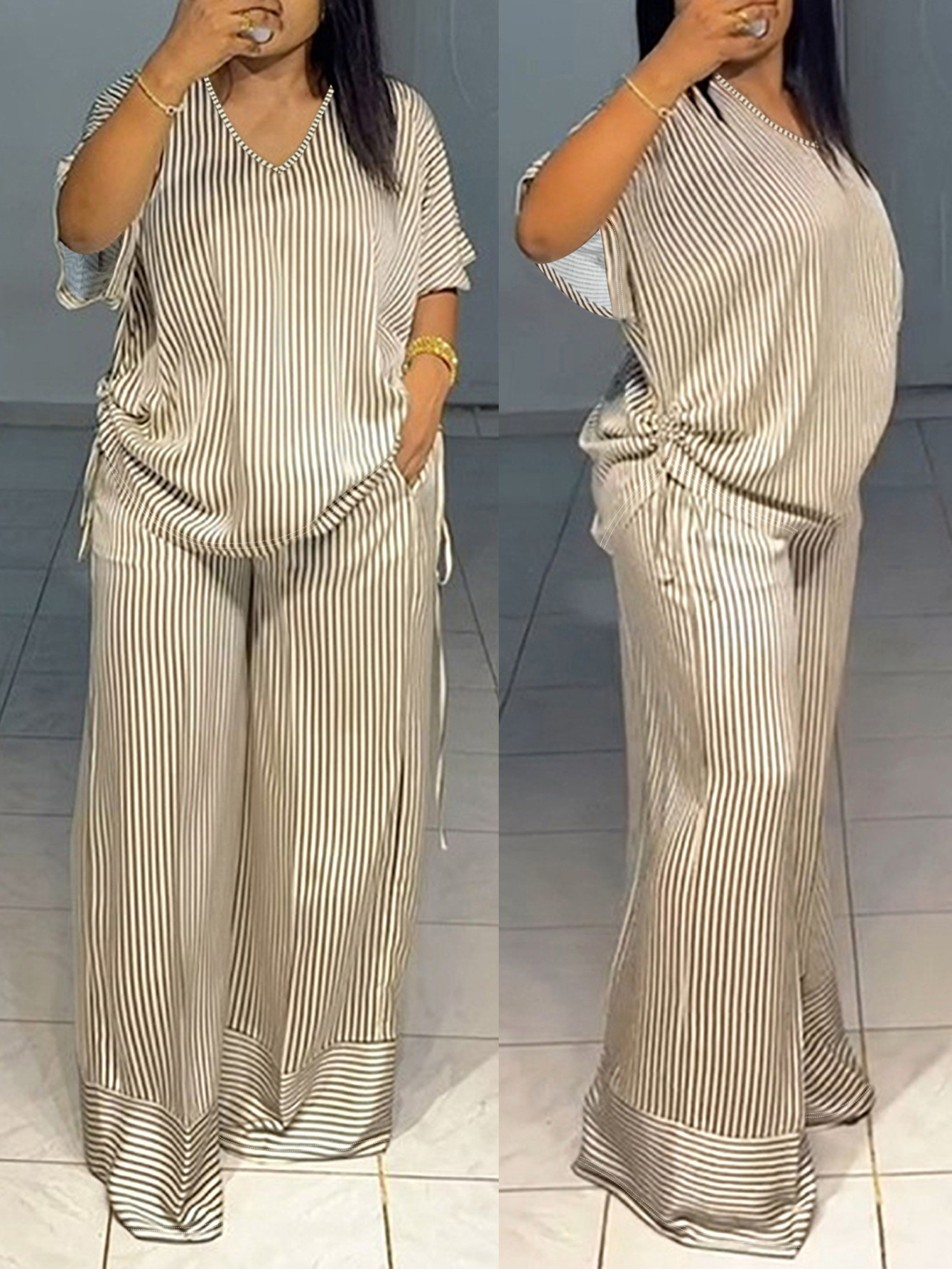 Straight Plus Size Set With Drawstring On Both Sides