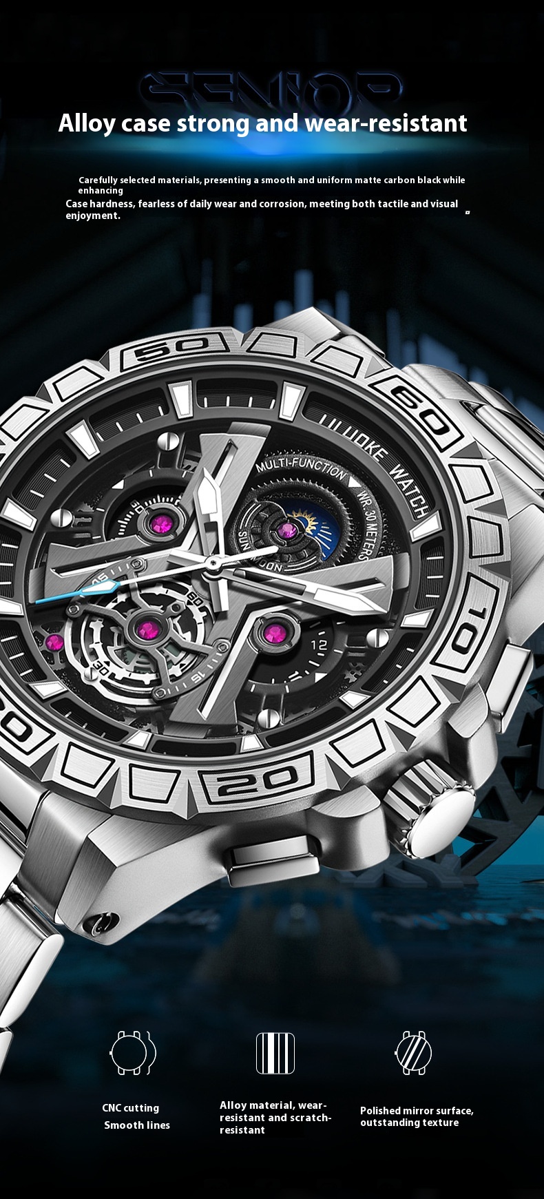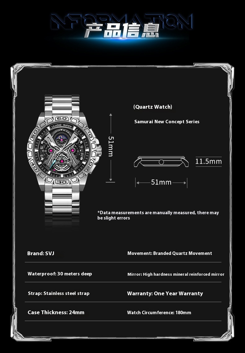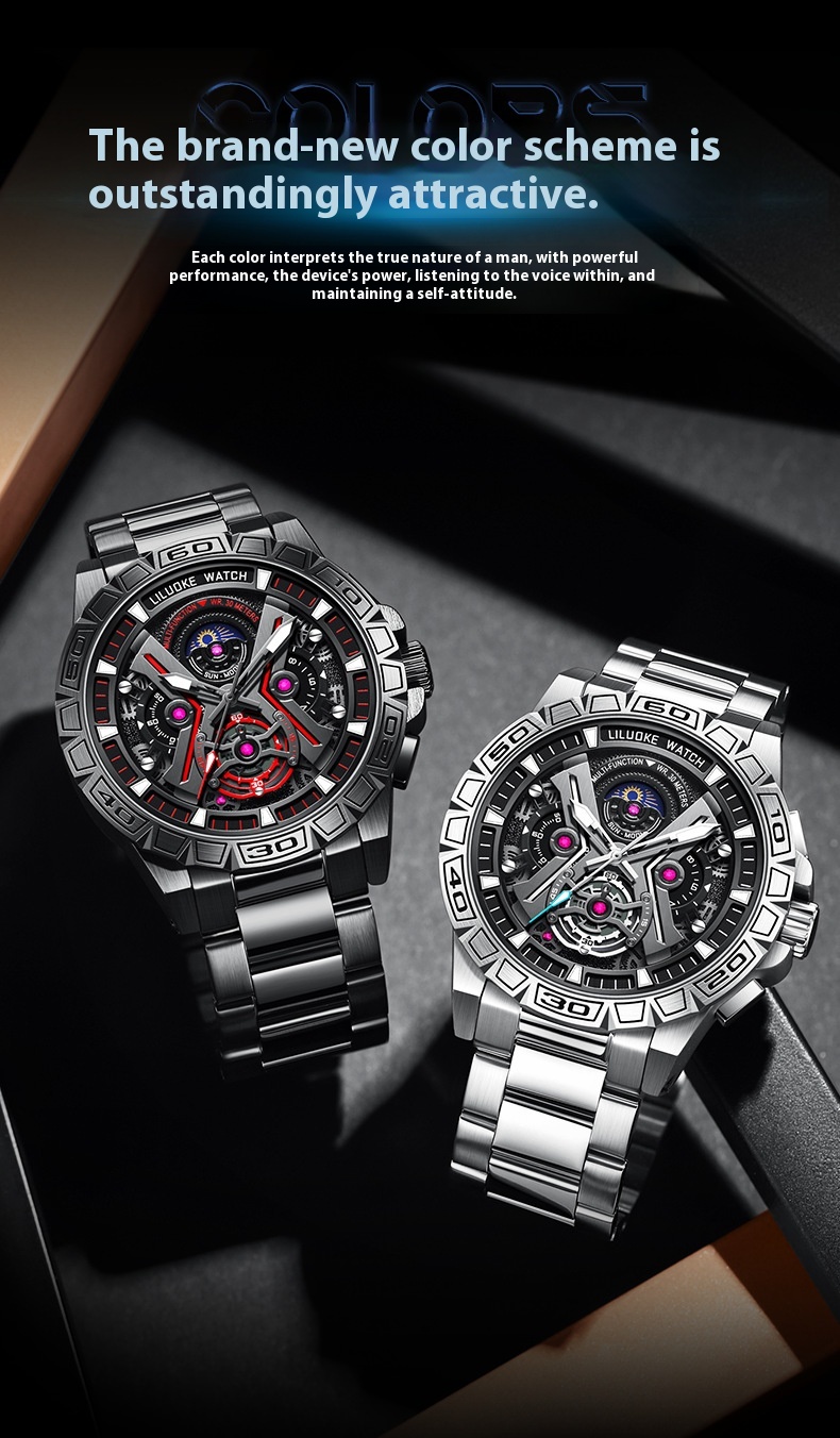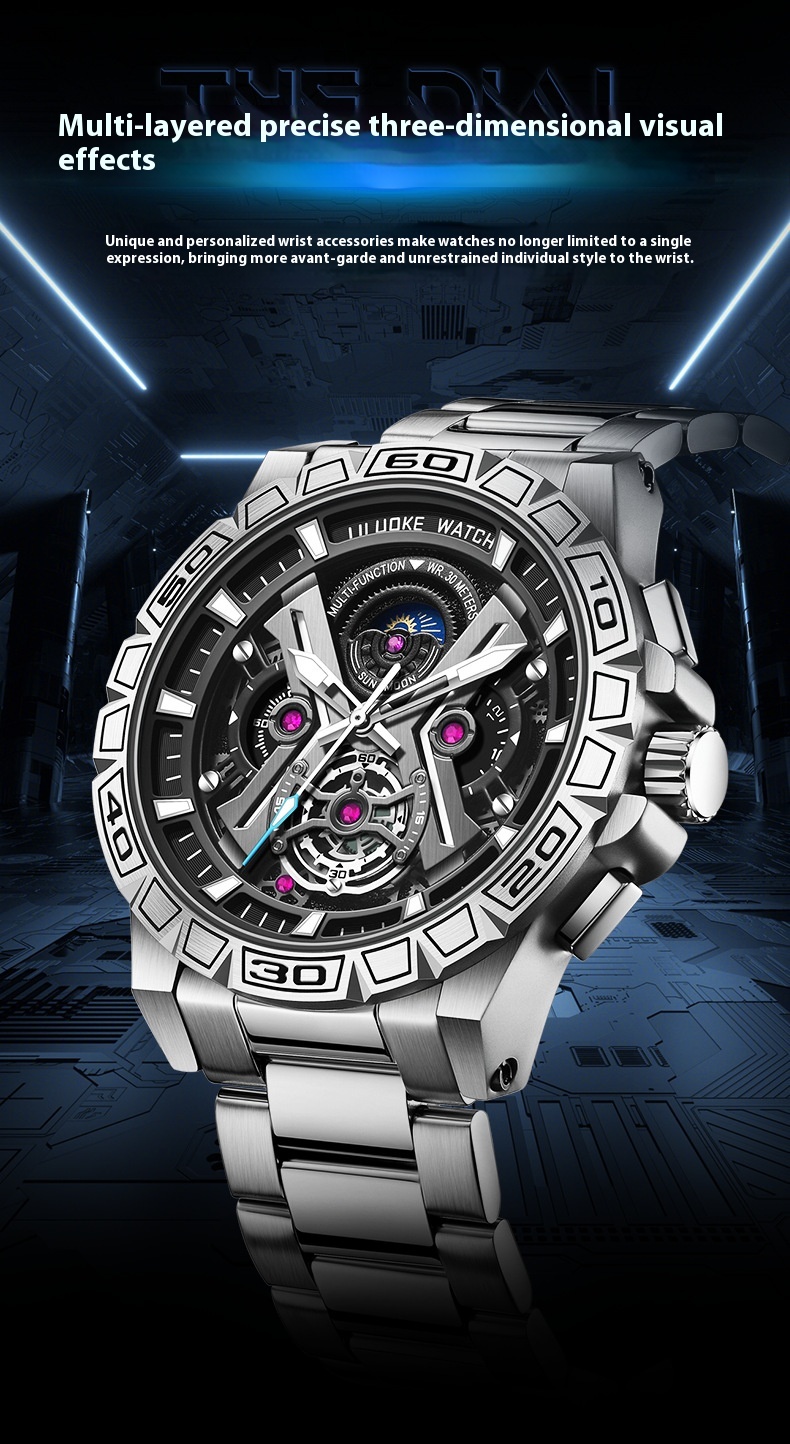 Three-Dimensional Hollow Waterproof Luminous Multifunction Quartz Watch