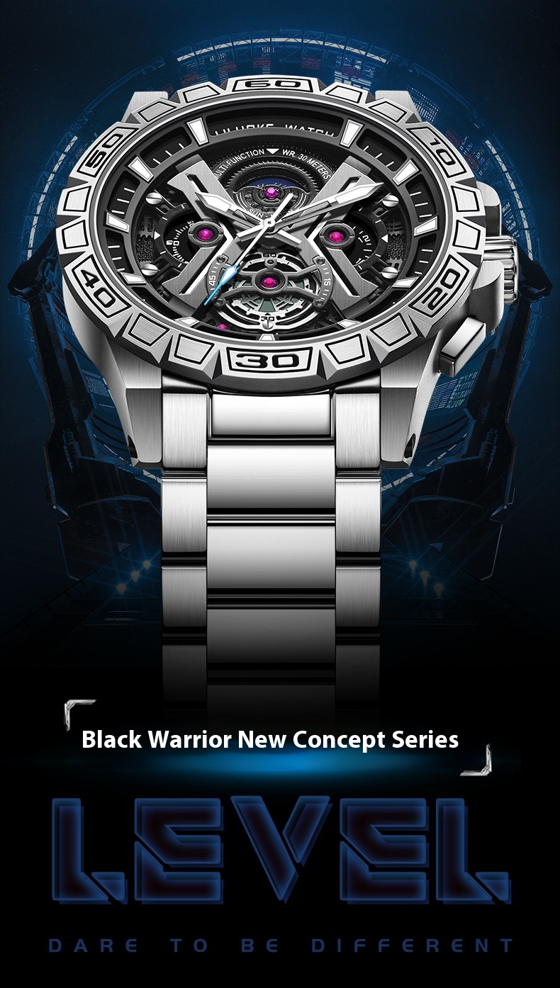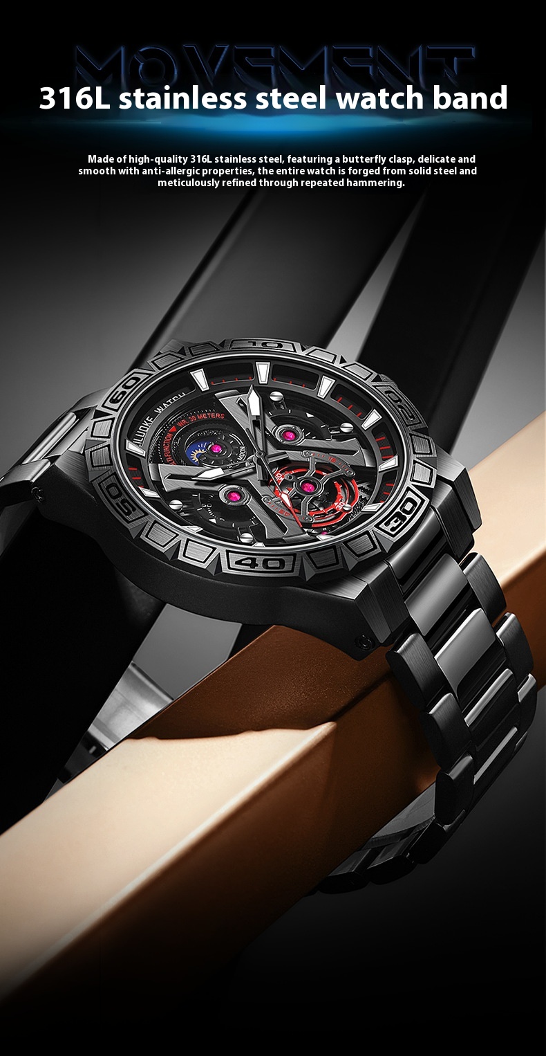 Color: all black solid steel belt, steel case black surface steel belt, all black red bottom steel belt rotating luminous, all black black bottom steel belt rotating luminous