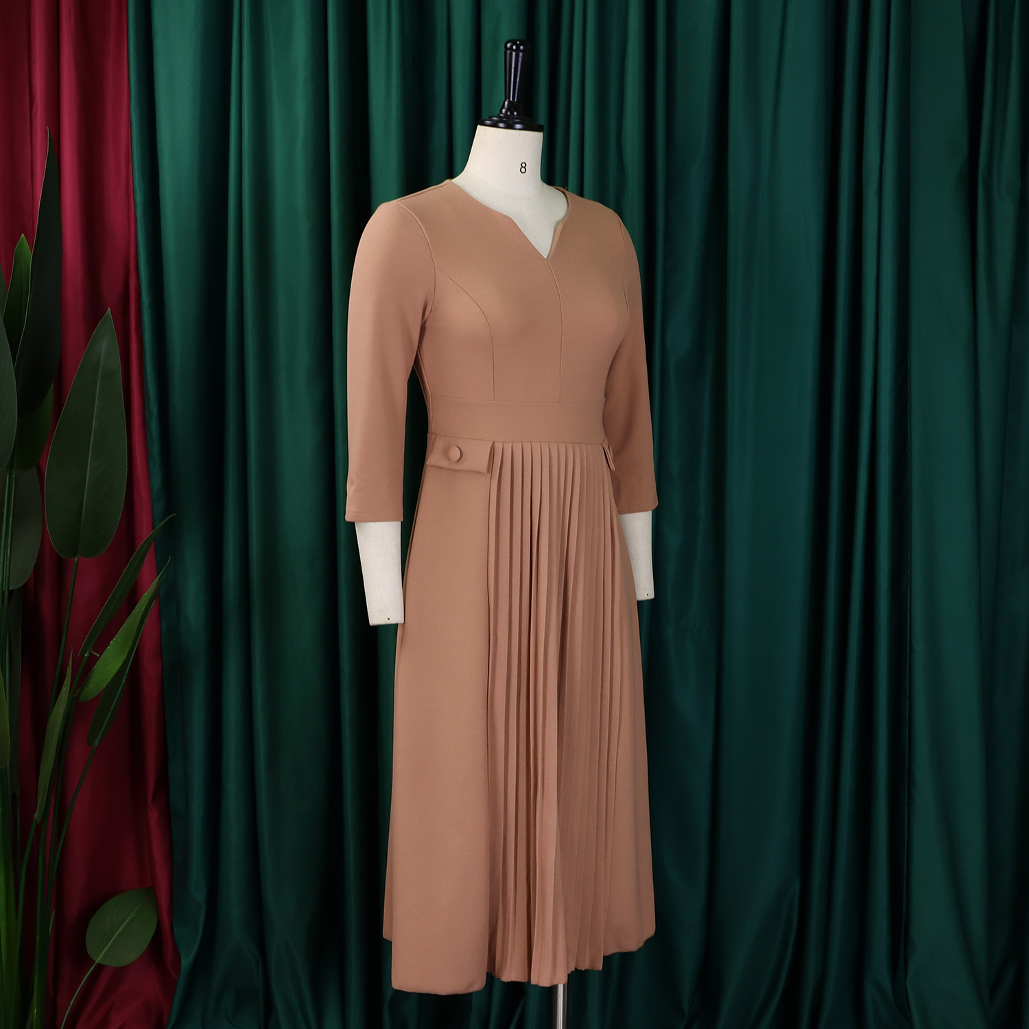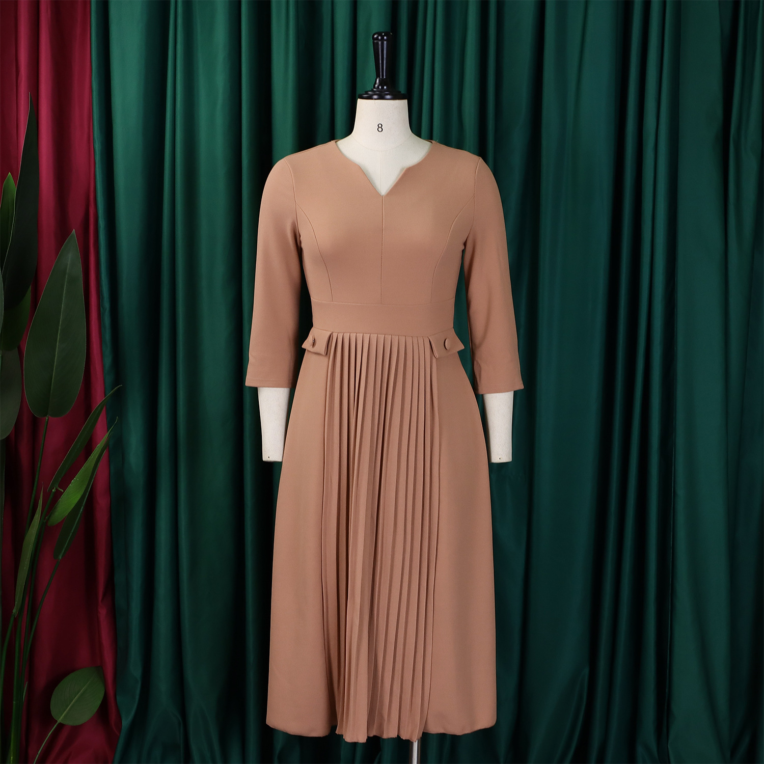 Women's Solid Color Plus Size Fashion Pleated Dress